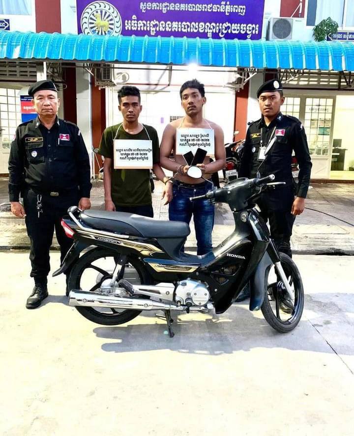 ជនសង្ស័យដែលឃាត់ខ្លួនចំនួន០២នាក់ រួមមាន៖ ទី១- ឈ្មោះ សាឡេះ រ៉ូសាលី ហៅ បឿក អាយុ ២៦ឆ្នាំ ស្នាក់នៅផ្ទះជួល ភូមិ១ សង្កាត់ជ្រោយចង្វារ ខណ្ឌជ្រោយចង្វារ រាជធានីភ្នំពេញ មុខរបរ មិនពិតប្រាកដ។ និង២- ឈ្មោះ សាលីម សាពីតុលពសៀត ហៅ តុល អាយុ២៥ឆ្នាំ ទីលំនៅបច្ចុប្បន្ន ភូមិ១ សង្កាត់ជ្រោយចង្វារ ខណ្ឌជ្រោយចង្វារ រាជធានីភ្នំពេញ។