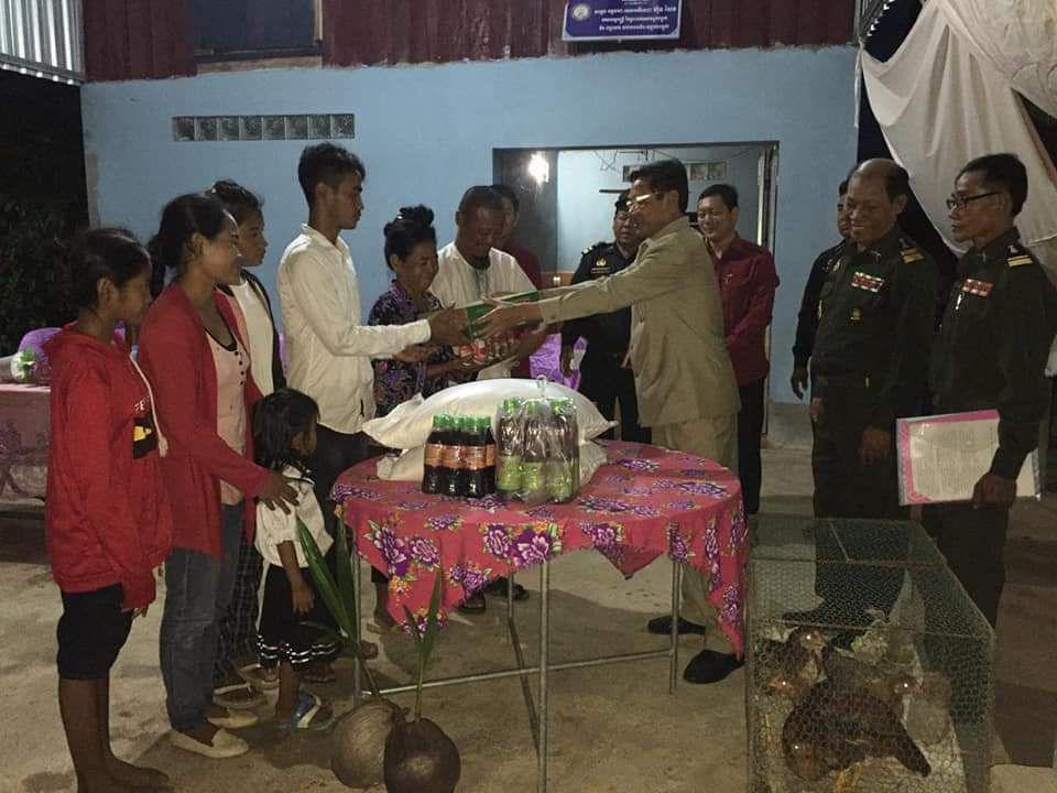 ក្នុងពិធីនេះ ក៏មានការជួយឧបត្ថម្ភ ពីសំណាក់ឯកឧត្តម អភិបាលខេត្ត ឯកឧត្តម ប្រធាន ស.អ.ក និង សប្បុរសជន នានា ក្នុងមួយគ្រួសារៗ ទទួលបាននូវថវិកាសរុប ចំនួន១លានរៀល ឃីត១កញ្ចប់ មេមាន់រស់ ចំនួន០៤ក្បាល កូនដូង ចំនួន ០២ដើម និង គ្រឿងឧបភោគ បរិភោគ មួយចំនួន ដោយឡែក ប្រជាពលរដ្ឋចូលរួម ទទួលបានថវិកា ចំនួន ១ម៉ឺនរៀលផងដែរ។