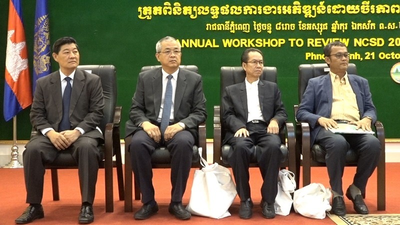 ភ្នំពេញ ៖ សិក្ខាសាលាត្រួតពិនិត្យលទ្ធផលការងារអភិវឌ្ឍន៍ដោយចីរភាពឆ្នាំ២០១៩ និងទិសដៅការងារឆ្នាំ២០២០ ក្រោមអធិបតីភាព ឯកឧត្តម សៅ សុភាព រដ្ឋលេខាធិការ តំណាងឯកឧត្តម សាយ សំអាល់ រដ្ឋមន្រ្តីក្រសួងបរិស្ថាន នាព្រឹកថ្ងៃទី២១ ខែតុលា ឆ្នាំ២០១៩ នាទីស្តីការក្រសួង ដោយមនាករចូលរួមពីតំណាងក្រសួង ស្ថាប័នពាក់ព័ន្ធ ដៃគូអភិវឌ្ឍន៍ និងអង្គការមិនមែនរដ្ឋាភិបាល ភ្ញៀវកិត្តិយសជាតិ និងអន្តរជាតិជាច្រើននាក់ ។