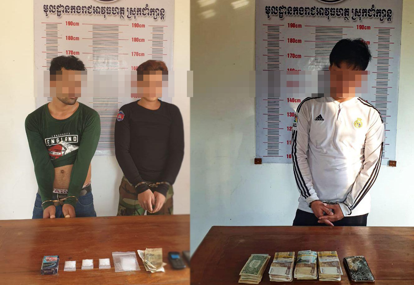 អាវុធហត្ថស្រុកជាំក្សាន្ត ឃាត់ខ្លួនជនសង្ស័យ៣នាក់ ដកហូតថ្នាំញៀនមួយចំនួន
