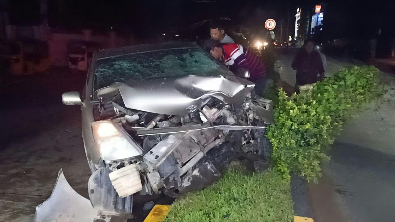 រថយន្តព្រូសបោះពួយលឿនដូចហោះទៅបុកខឿនសួនច្បារពុះចែកទ្រូងផ្លូវរងការខូចខាតយ៉ាងដំណំ និងរបួសពីរនាក់