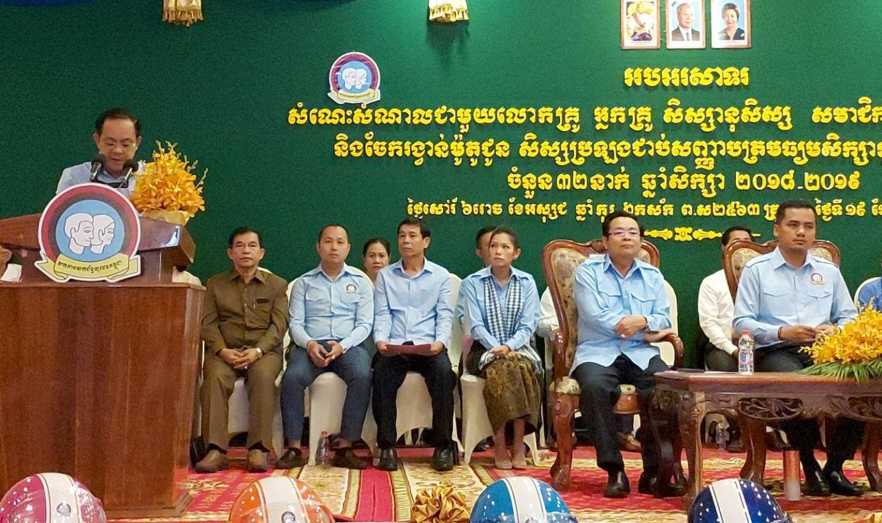សូមបញ្ជាក់ថា៖ សិស្សនិទ្ទេស(អេ) ទាំង៣២រូប គឺក្នុងម្នាក់ៗទទួលបានម៉ូតូហុងដាវ៉េវ ២០១៩ ០១គ្រឿង និងថវិកាមួយចំនួន ពីឯកឧត្តម ស សុ ខា ឯកឧត្តម ភួ ពុយ ឯកឧត្តមអភិបាលខេត្ត និងពីសប្បុរសជននានា ក្នុងខេត្តបាត់ដំបងផងដែរ៕ (អត្ថបទ-រូបភាព៖ អ៊ុក សំអាន បប)