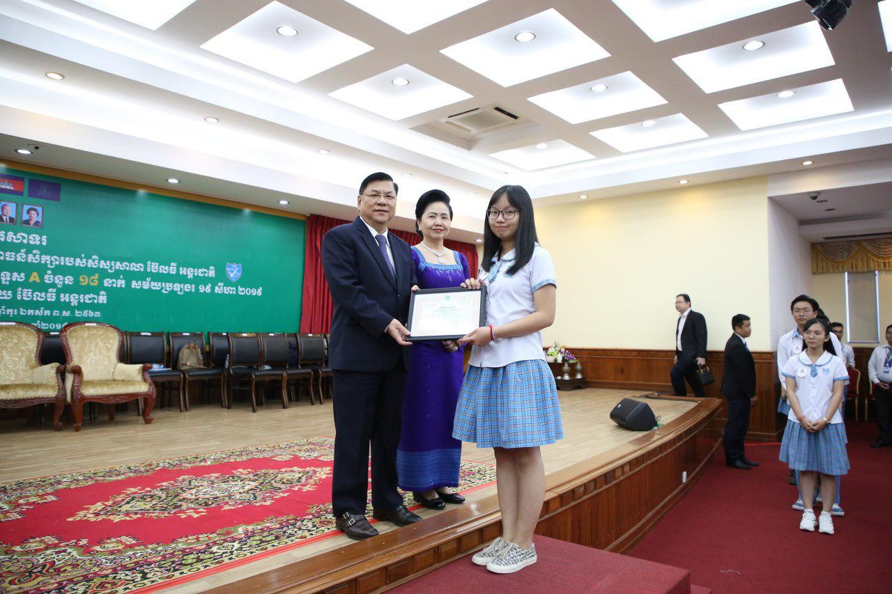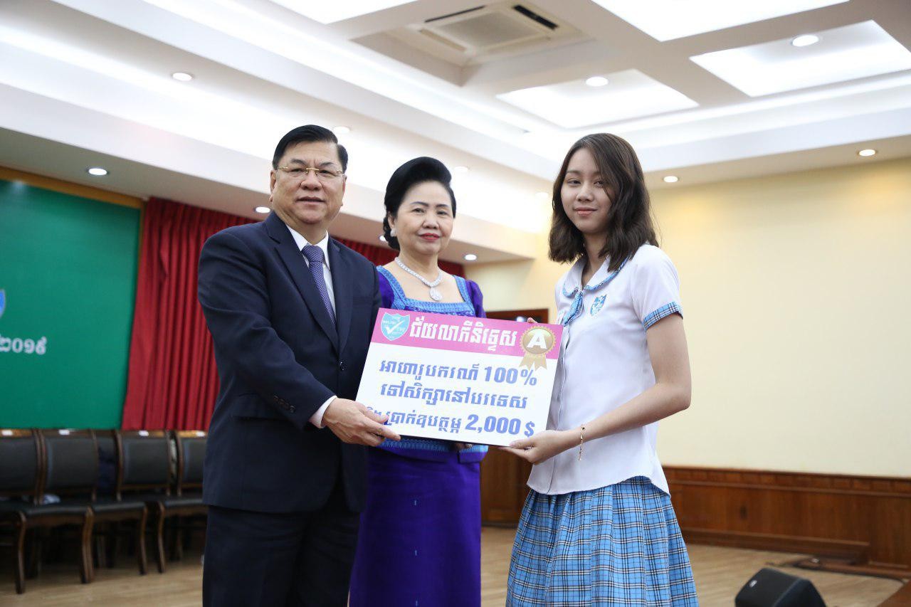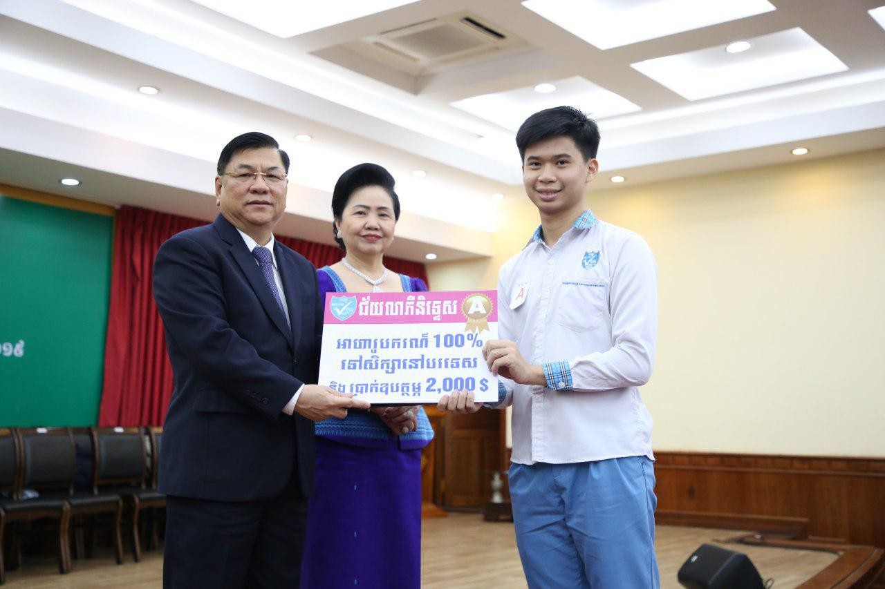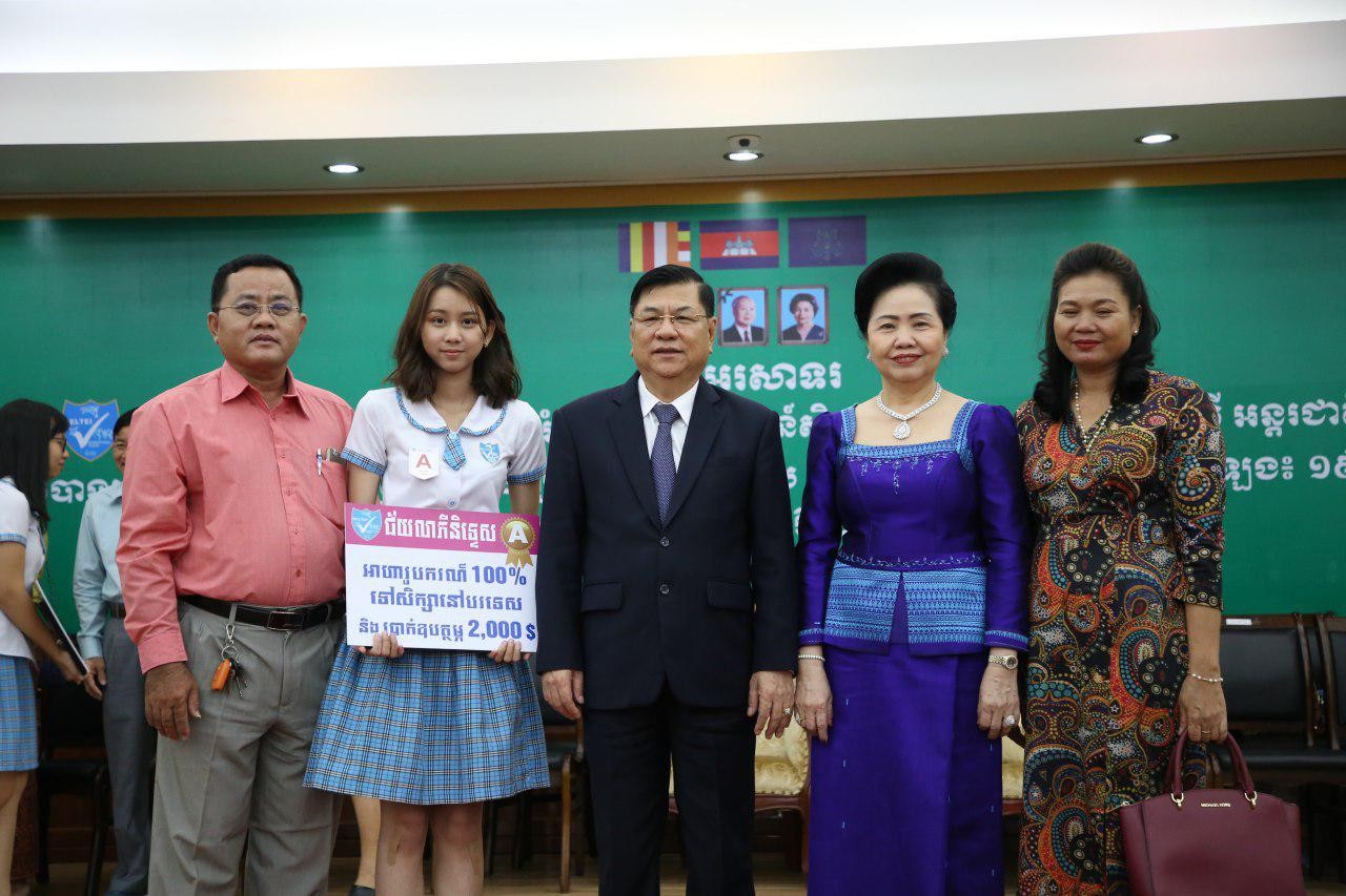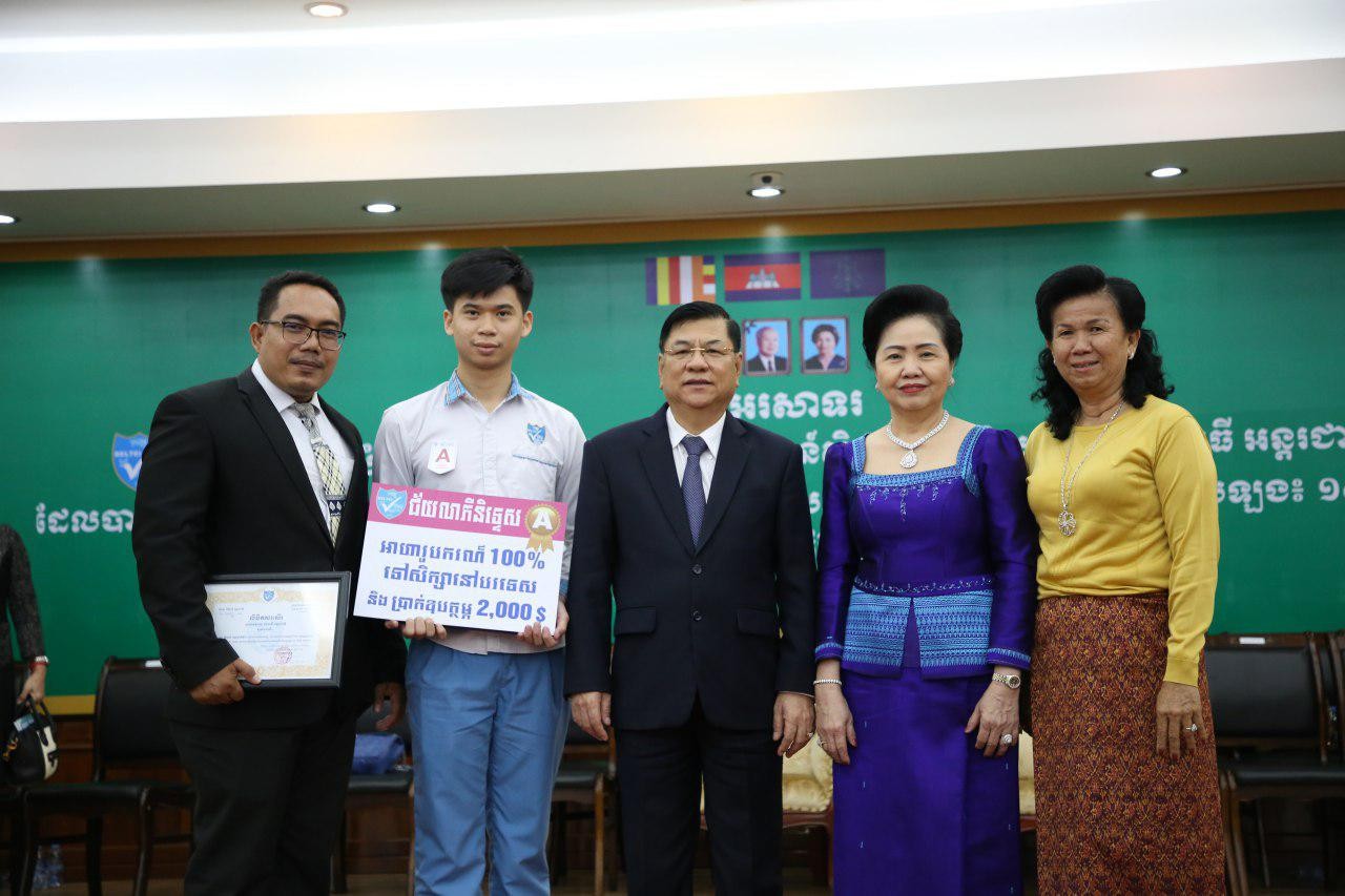 ដើម្បីជាការជំរុញនិងលើកទឹកចិត្តដល់សិស្ស ឯកឧត្តមបណ្ឌិត អគ្គនាយក និងលោកជំទាវ បានប្រគល់លិខិតសរសើរ និងអាហារូបករណ៍ឧកញ៉ា លី ឆេង សិក្សាថ្នាក់បរិញ្ញាបត្រ ១០០% ជូនដល់សិស្សនិទ្ទេស A ទាំង ១៨រូប ព្រមទាំង ឧបត្ថម្ភថវិកាសម្រាប់ការ ចំណាយផ្សេងៗក្នុងម្នាក់ៗ ២ពាន់ដុល្លារ ជូនដល់ លោកគ្រូ-អ្នកគ្រូថ្នាក់ទី១២ ដែលមានសិស្សជាប់និទ្ទេសA នូវលិខិតសរសើរ និងថវិកាលើកទឹកចិត្តក្នុងម្នាក់ៗ ១០០ដុល្លារ ផងដែរ។