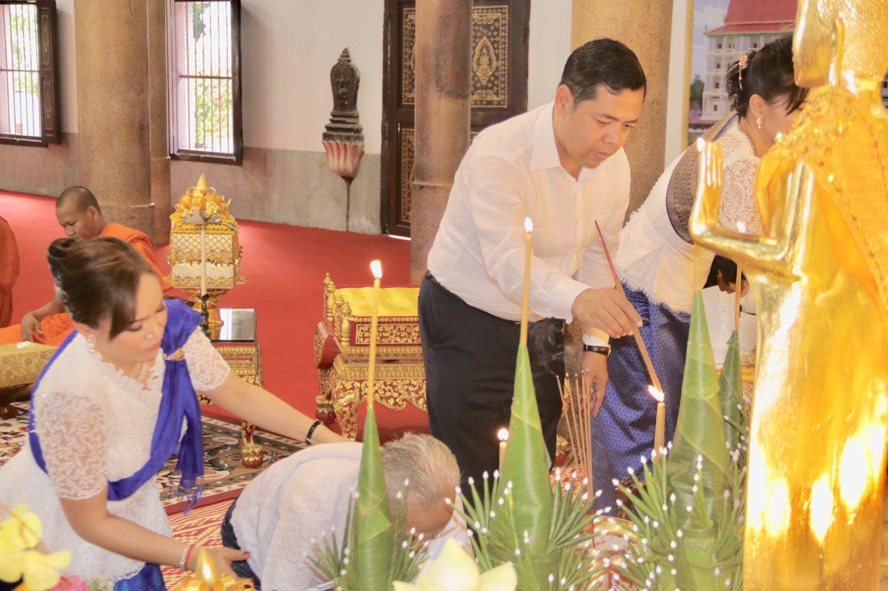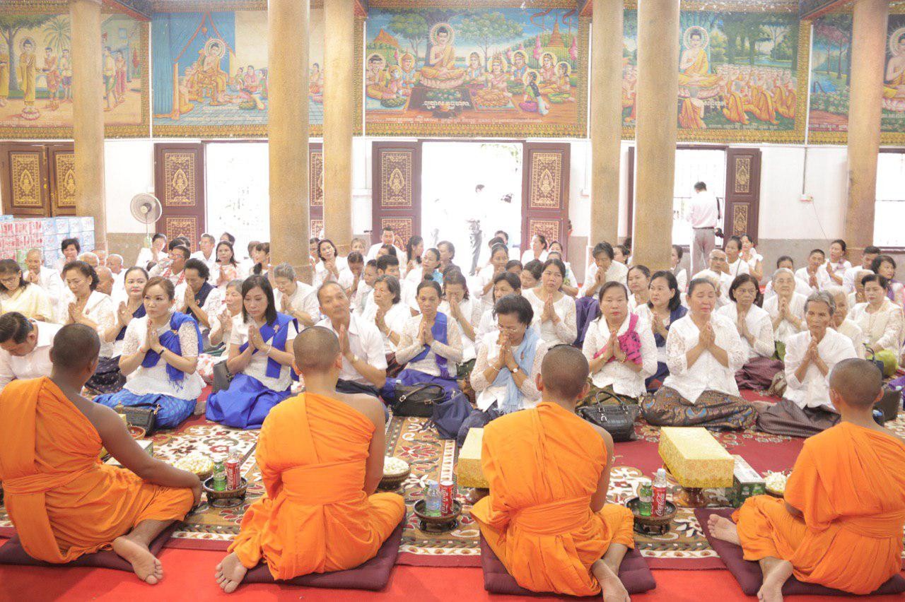 ធ្វើបទនមស្ការព្រះរតនត្រ័យ សមាទានសីល និមន្តព្រះសង្ឈចម្រើនព្រះបរិត្ត និងប្រទានធម្មទេសនា នៅវត្តលង្កាព្រះកុសមារាម ។