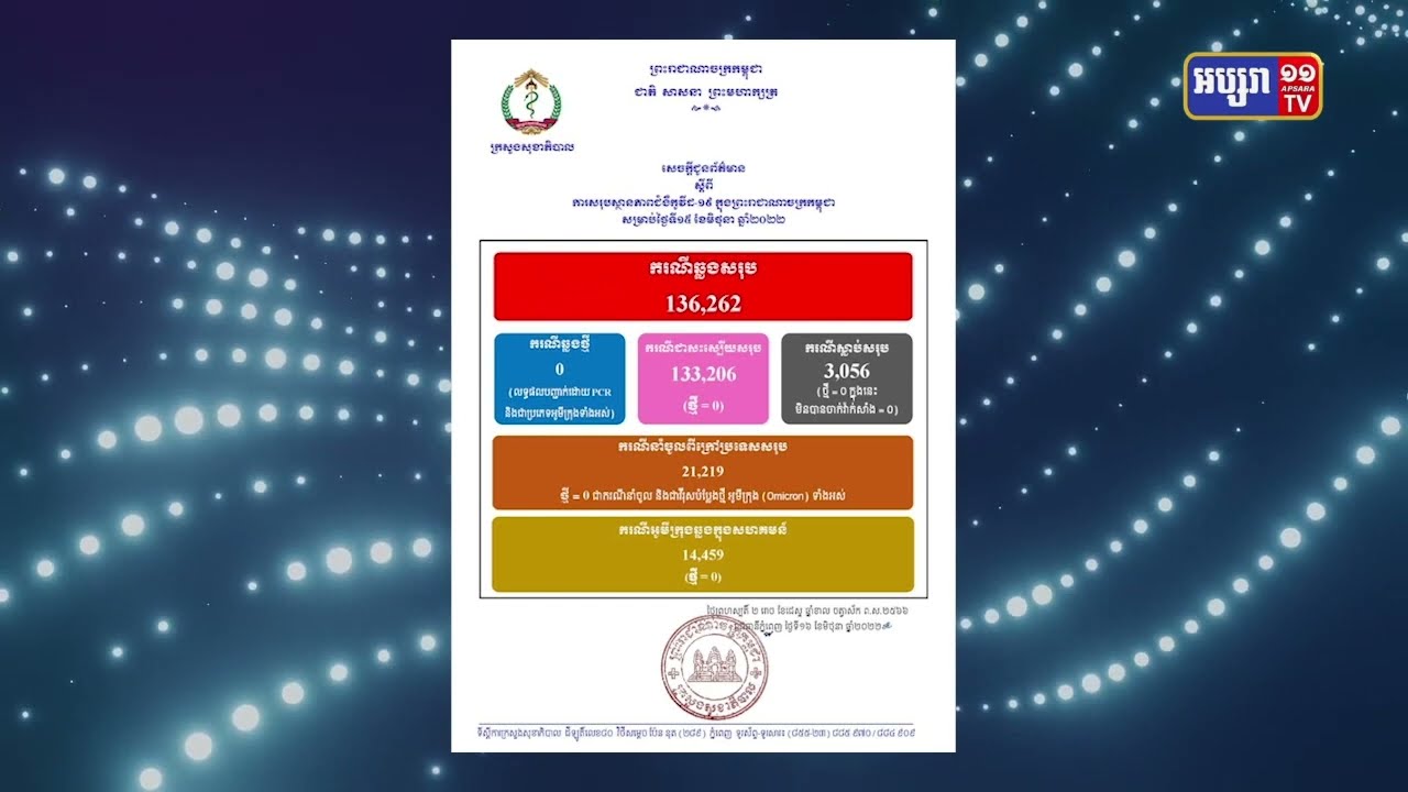 កម្ពុជា២៤ម៉ោងមិនមានអ្នកឆ្លងជំងឺកូវីដ១៩ទេ (Video Inside)