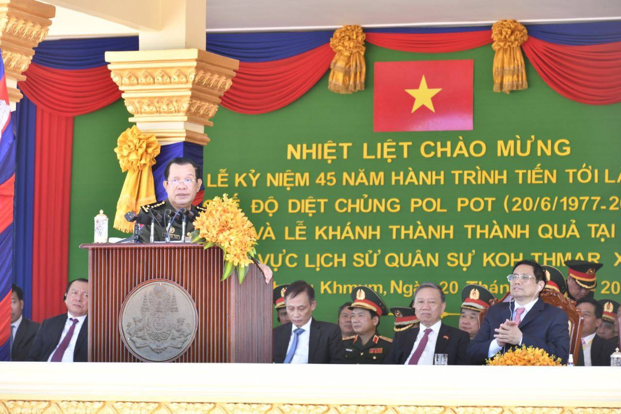 ត្បូងឃ្មុំ៖ ក្នុងពិធីអបអរសាទរខួបលើកទី៤៥ នៃទិវាការចងចាំដំណើរឆ្ពោះទៅកាន់ការផ្ដួលរំលំរបបប្រល័យពូជសាសន៍ ប៉ុល ពត (២០មិថុនា១៩៧៧–២០មិថុនា ២០២២) និងសម្ពោធសមិទ្ធផលនានានៅតំបន់ប្រវត្តិ សាស្ត្រយោធាតេជោកោះថ្ម X16 ស្ថិតនៅភូមិកោះថ្ម ឃុំទន្លូង ស្រុកមេមត់ ខេត្តត្បូងឃ្មុំនាព្រឹកថ្ងៃទី ២០ ខែ មិថុនា ឆ្នាំ២០២២ ប្រមុខរាជរដ្ឋាភិបាលកម្ពុជា សម្ដេចតេជោ ហ៊ុន សែន បានថ្លែងនៅមុខសមភាគី វៀតណាមនិងបណ្តាអង្គទូតបរទេសដោយច្បាស់ៗថា ខ្ញុំគ្មានសិទ្ធិដើម្បីប្រគល់ដីឱ្យវៀតណាម សូម្បីមួយមីល្លីម៉ែត្រ ហើយខ្ញុំក៏មិនចង់បានដីវៀតណាម សូម្បីមួយមីល្លីម៉ែត្រ សូមឲ្យតែត្រូវទៅតាមក្បួនខ្នាតដែលអាណានិគមនិយមបារាំង បានផ្ដល់បន្សល់ទុកទៅបានហើយ ។