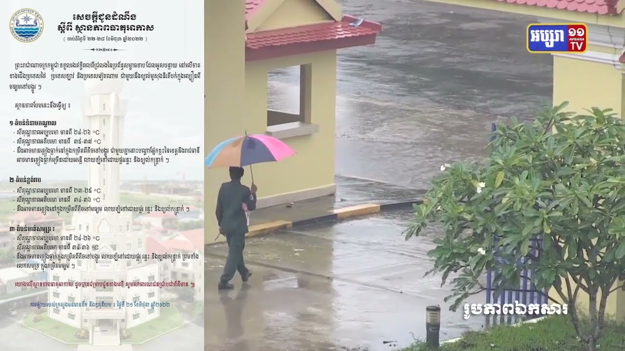ព្យាករណ៍ធាតុអាកាសប្រចាំសប្តាហ៍ ចាប់ពីថ្ងៃទី២២ ដល់ថ្ងៃទី២៨ មិថុនា ២០២២ (Video Inside)