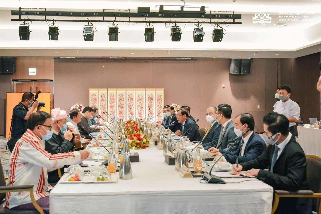 សូមជម្រាបថា កាលពីថ្ងៃទី០១ ខែកក្កដា ឆ្នាំ២០២២ ឯកឧត្តម ឧបនាយករដ្ឋមន្ត្រី ប្រាក់ សុខុន អមដំណើរដោយឯកឧត្តម ឯកផាប់ ផាន់ថាវង្ស អគ្គលេខាធិការរងអាស៊ានទទួលបន្ទុកសហគមន៍សង្គម-វប្បធម៌អាស៊ាន បានជួបពិភាក្សាកាងារជាមួយតំណាងអង្គការប្រដាប់អាវុធជនជាតិភាគតិចចំនួន៧ ដែលបានចុះហត្ថលេខាកិច្ចព្រមព្រៀងបទឈប់បាញ់ជាមួយក្រុមប្រឹក្សារដ្ឋបាលរដ្ឋ (SAC)។ កិច្ចប្រជុំបានផ្លាស់ប្តូរទស្សនៈលើស្ថានភាពនយោបាយនៅក្នុងប្រទេស ជាពិសេសលើវិធីដែលមីយ៉ាន់ម៉ាអាចជំរុញការចរចាសន្តិភាពទៅមុខដើម្បីជាប្រយោជន៍ដល់ប្រជាជនទាំងអស់នៅក្នុងប្រទេស។ នេះតាមការបញ្ជាក់របស់ក្រសួងការបរទេសកម្ពុជានៅព្រឹកថ្ងៃទី០២ ខែកក្កដា ឆ្នាំ២០២២។