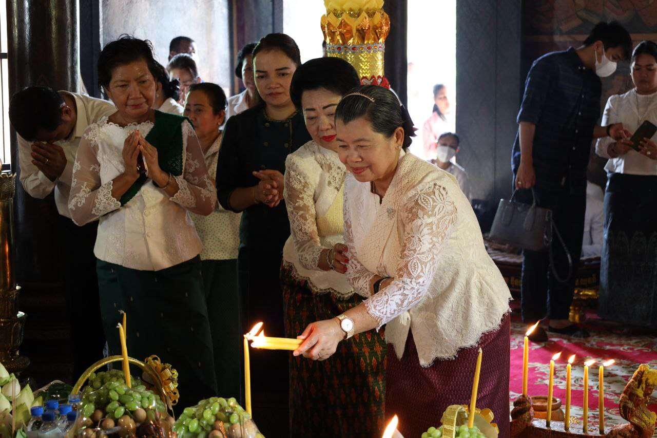 លោកជំទាវកិត្តិសង្គហបណ្ឌិត ម៉ែន សំអន អញ្ជើញអុជធូប ថ្វាយគ្រឿង សក្ការៈ និងតម្កល់ទៀនព្រះវស្សានៅព្រះវិហារវត្តភ្នំ