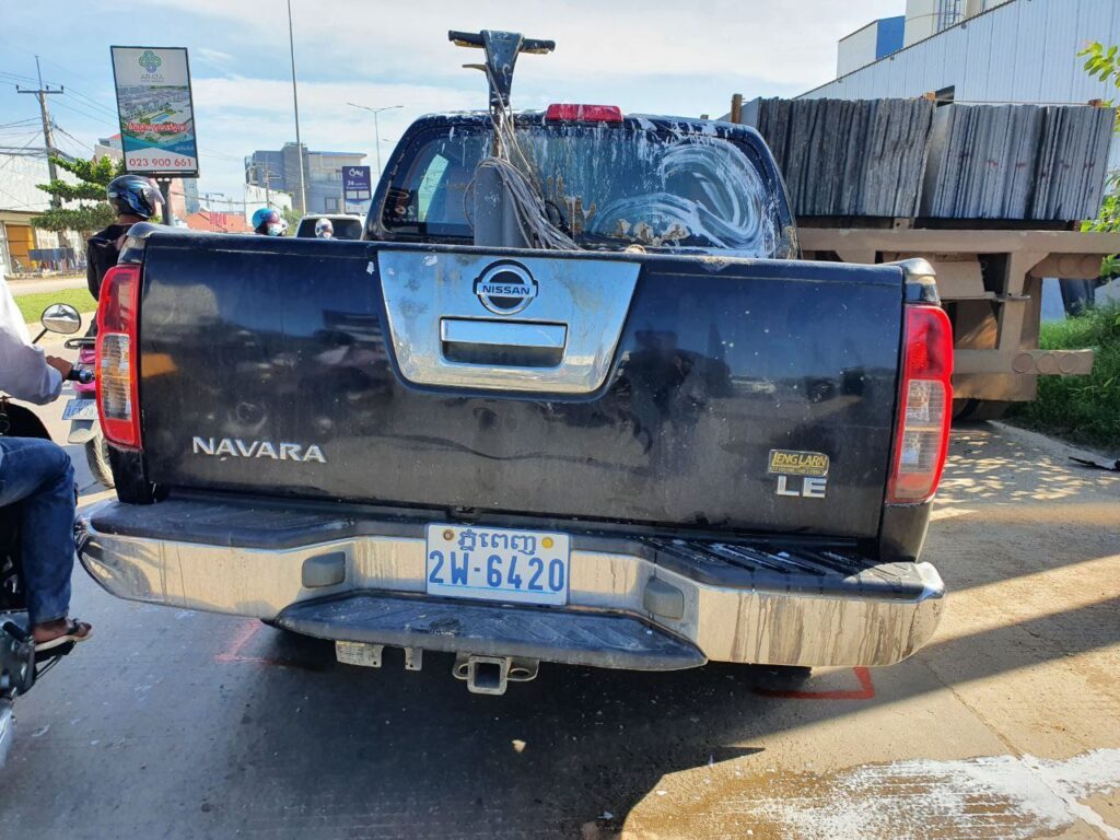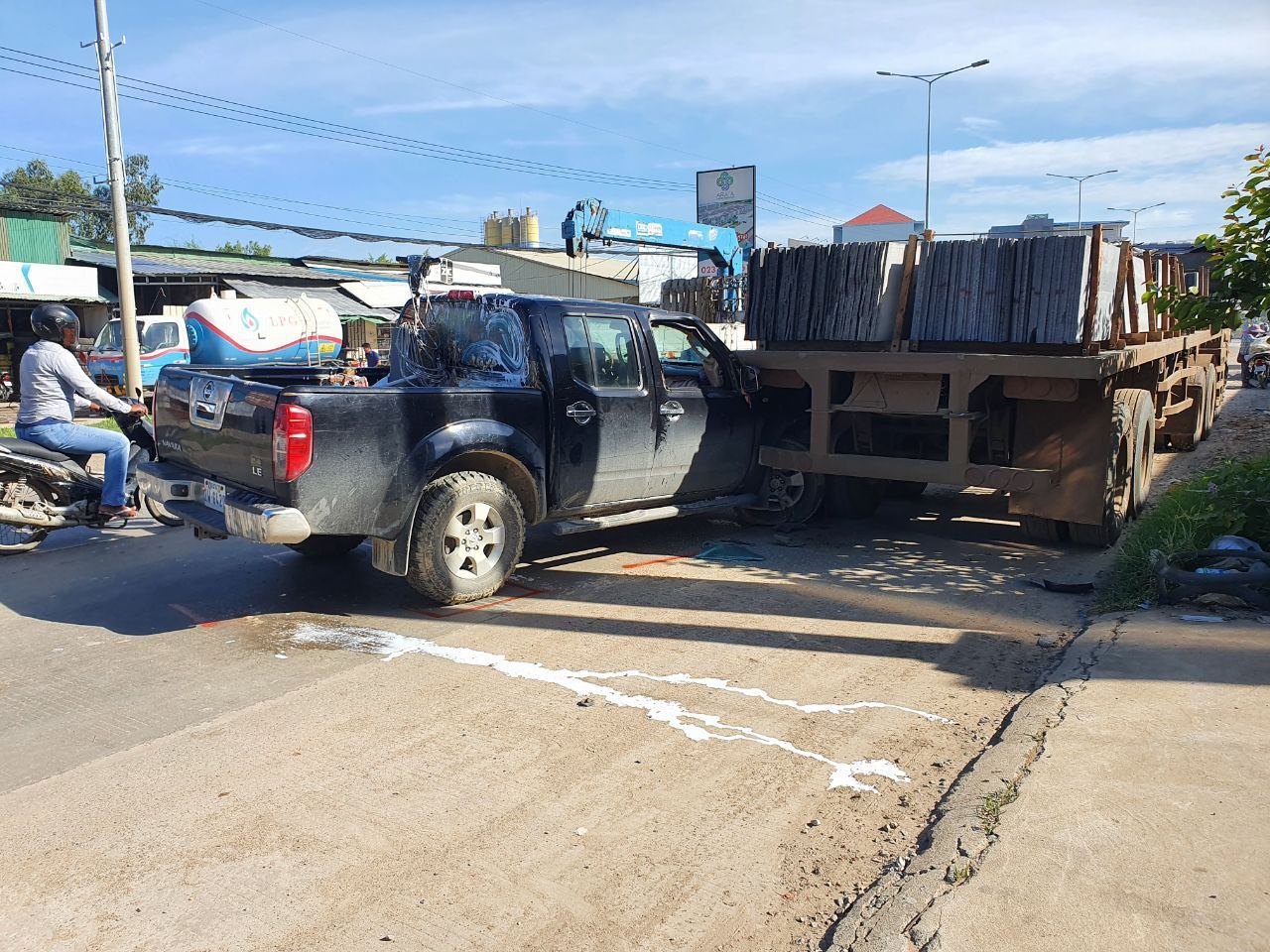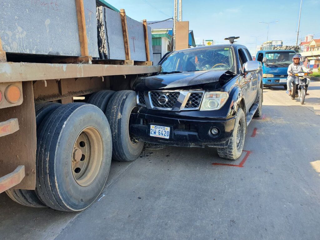 បើតាមប្រភពព័ត៌មានពីកន្លែងកើតហេតុបានឱ្យដឹងថា នៅមុនពេល កើតហេតុគេឃើញរថយន្តធុនធំដឹកថ្មមួយគ្រឿងម៉ាកDAEWOO NOVUS ពណ៌ស្លែ ពាក់ផ្លាកលេខត្បូងឃ្មុំ 3A-0869 បានចតនៅ អែបកៀនផ្លូវដើម្បីដាក់ថ្មចូលក្នុងឃ្លាំង។ ពេលនោះស្រាប់តែមាន រថយន្ត ម៉ាកNISSAN NAVARA ពណ៌ខ្មៅ ពាក់ផ្លាកលេខ ភ្នំពេញ2W-6420 បើកបរដោយបុរស និងរួមដំណើរ ដោយស្ត្រីម្នាក់ ធ្វើដំណើរតាមបណ្ដាយផ្លូវភ្នំពេញ-ហាណូយពីជើង ទៅត្បូងក្នុងល្បឿន លឿន ហើយខណៈមកដល់ត្រង់ចំណុចកើតហេតុបានបើក គេចពី រថយន្តមួយគ្រឿងទៀតក៏ជ្រុលចង្កូតទៅបុកចំពីក្រោយរថយន្តធុនធំពេញទំហឹងបណ្ដាលឱ្យរងការខូចខាតយ៉ាងដំណំ ចំណែកឯស្ត្រីម្នាក់ ដែលរួមដំណើររងរបួសត្រូវបានបញ្ជូនទៅកាន់មន្ទីរពេទ្យភ្លាមៗ។