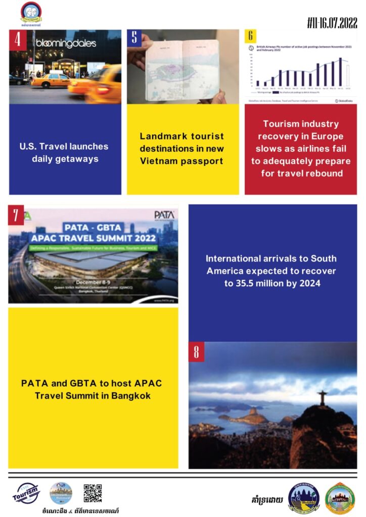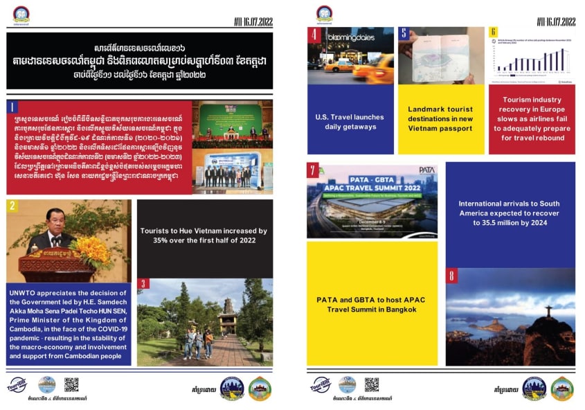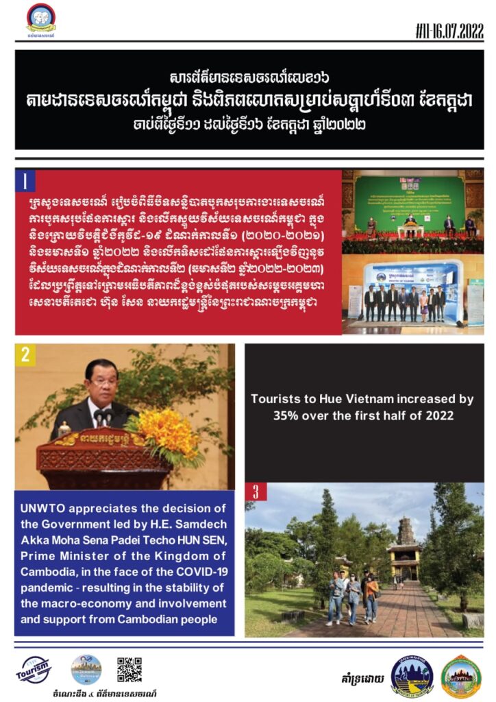 ព័ត៌មានទេសចរណ៍កម្ពុជា និងពិភពលោក សម្រាប់សប្តាហ៍ទី០៣ ខែកក្កដា (ចាប់ពីថ្ងៃទី១១ ដល់ ១៦ ខែកក្កដា ឆ្នាំ២០២២)៖