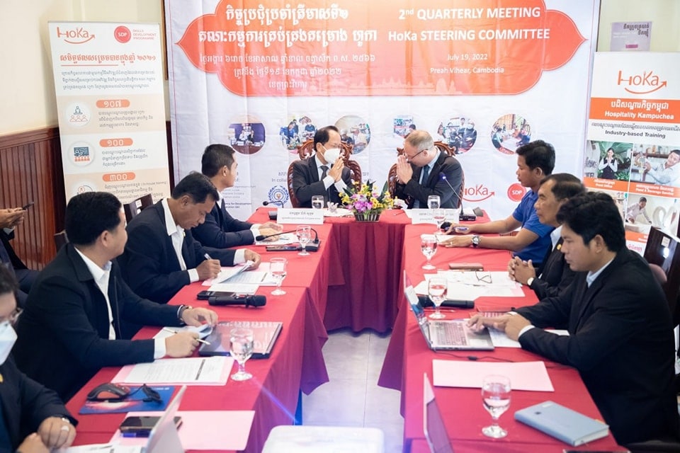 លោក ជួប រតនា ប្រធាននាយកដ្ឋានផែនការអភិវឌ្ឍន៍ទេសចរណ៍ និងជាប្រធានលេខាធិការដ្ឋាននៃគណៈកម្មការគ្រប់គ្រងគម្រោង ហូកា បានរាយការណ៍ពីលទ្ធផលនៃការបណ្តុះបណ្តាលបដិសណ្ឋារកិច្ច ហូកា ប្រចាំឆមាសទី១ ឆ្នាំ២០២២ ដោយក្នុងនោះគណៈកម្មការគ្រប់គ្រងគម្រោង ហូកា បានធ្វើការបណ្តុះបណ្តាលអ្នកជំនាញ និងគ្រូបង្គោលសរុបចំនួន ៨៨៤រូប (ស្រី ៥៩៦រូប) ក្រោមការគាំទ្ររបស់អង្គការ SwissContact អង្គការអន្តរជាតិខាងការងារ (ILO) និងអង្គការ UNIDO លើជំនាញសេវាកម្មម្ហូបអាហារ និងភេសជ្ជៈ ការិយាល័យជួរមុខ គេហកិច្ច ចុងភៅ ជំនាញឆុងការហ្វេ នៅខេត្តព្រះវិហារ ក្រចេះ ស្ទឹងត្រែង រតនគិរី មណ្ឌលគិរី ខេត្តសៀមរាប បាត់ដំបង ពោធិ៍សាត់ និងកំពង់ឆ្នាំ។ ការបណ្តុះបណ្តាលបដិសណ្ឋារកិច្ច ហូកា ផ្តោតលើចំណេះដឹង និងជំនាញ ដល់សិក្ខាកាមដែលជាអ្នកជំនាញកំពុងបម្រើការងារបច្ចុប្បន្ន យុវជនទីទាល់ក្រ និងអ្នកជំណាញដែលបានឈប់សម្រាកពីការងារដោយវិបត្តិជំងឺកូវី-១៩។ ចាន់ វិចិត្រ
