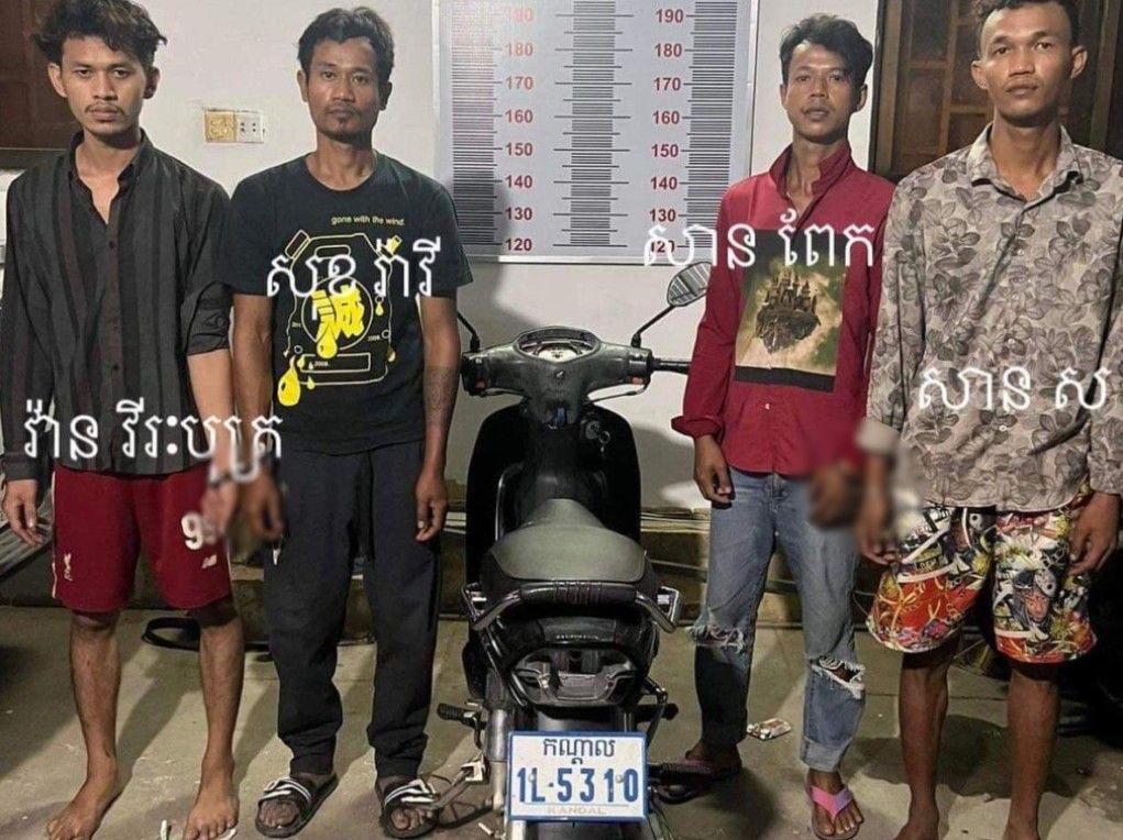 ជនសង្ស័យ ៤នាក់ក្នុងចំណោមបក្ខពួក ១០នាក់ ត្រូវកម្លាំងសមត្ថកិច្ចឃាត់ខ្លួន ពាក់ព័ន្ធករណីធាក់ប្លន់យកម៉ូតូ