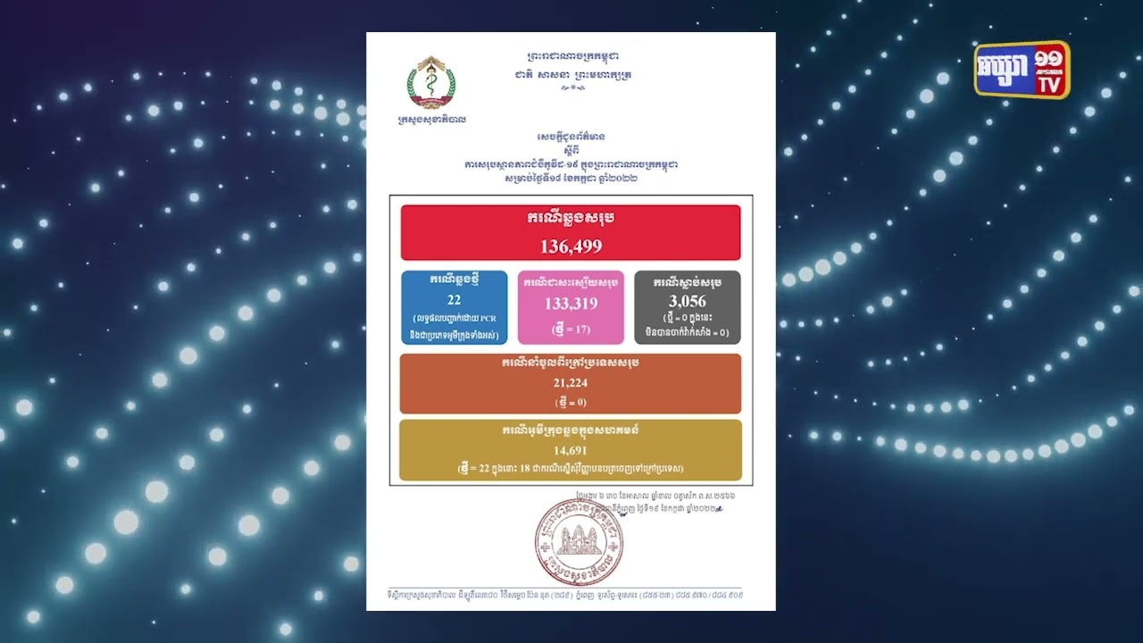 ក្រសួងសុខាភិបាលរកឃើញឆ្លងថ្មី ២២នាក់ (Video Inside)