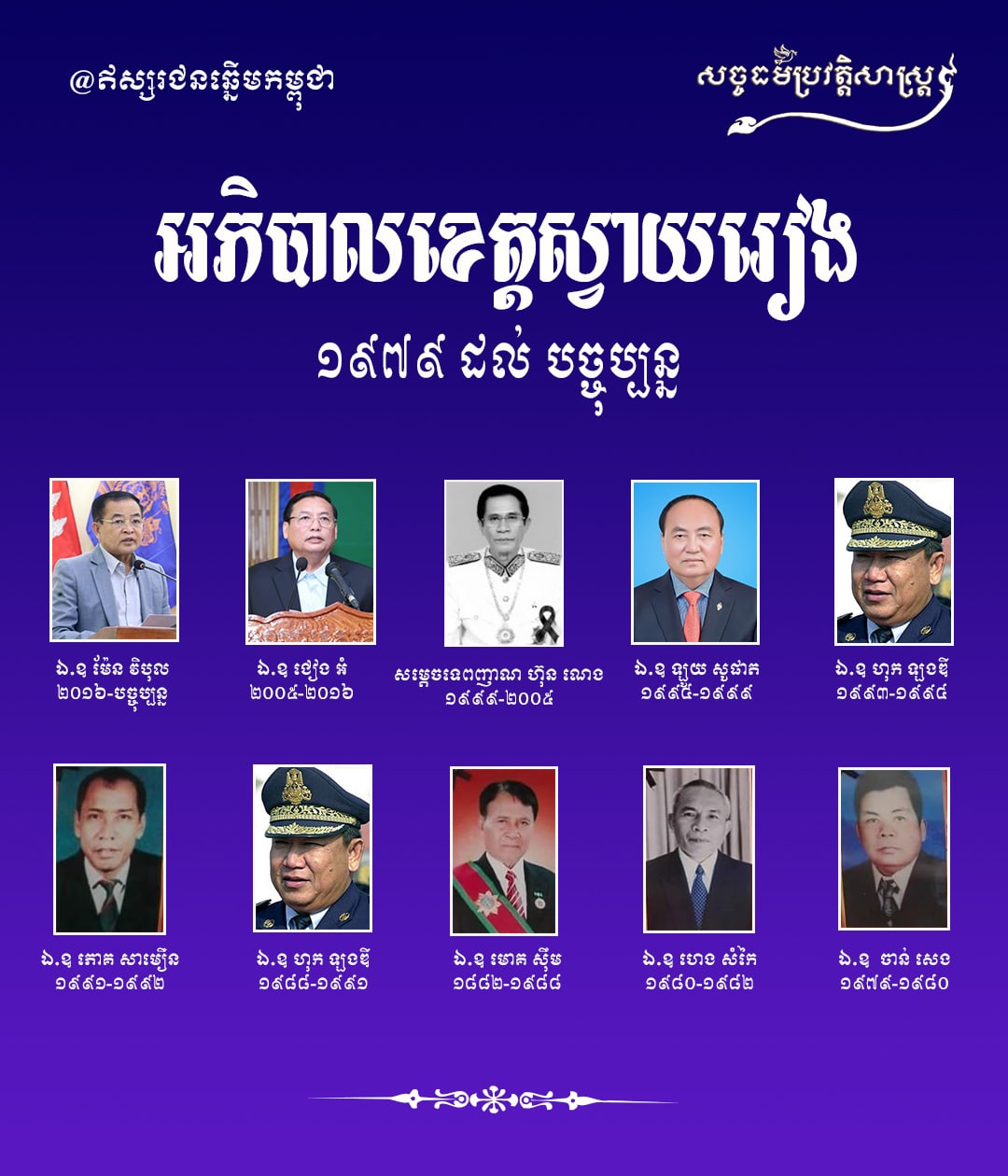 អភិបាលខេត្ដស្វាយរៀង ១៩៧៩ ដល់ បច្ចុប្បន្នសច្ចធម៌ប្រវត្តិសាស្ត្រអត្ថបទដោយ៖លី ប៊ុនហេង - Ly Bunheng #សច្ចធម៌ប្រវត្ដិសាស្រ្ដ #ព្រះរាជាណាចក្រកម្ពុជា #អតីតកាល #បច្ចុប្បន្ន #អភិបាលខេត្ដស្វាយរៀង #ឥស្សរជនឆ្នើមកម្ពុជា Facebook Page: សច្ចធម៌ប្រវត្ដិសាស្រ្ដTelegram Channel លី ប៊ុនហេង - Ly Bunhengលី ប៊ុនហេង ប្រធានផ្នែកផ្សព្វផ្សាយ នៃសច្ចធម៌ប្រវត្តិសាស្រ្ដអត្ថបទមុនអត្ថបទបន្ទាប់