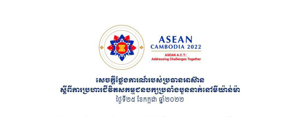 ភ្នំពេញ៖ ប្រធានអាស៊ាន បានចេញសេចក្ដីថ្លែងការណ៍មួយនៅថ្ងៃទី២៥ ខែកក្កដា ឆ្នាំ២០២២ ស្ដីពីការប្រហារជីវិតសកម្មជនបក្សប្រឆាំងបួននាក់នៅមីយ៉ាន់ម៉ា។