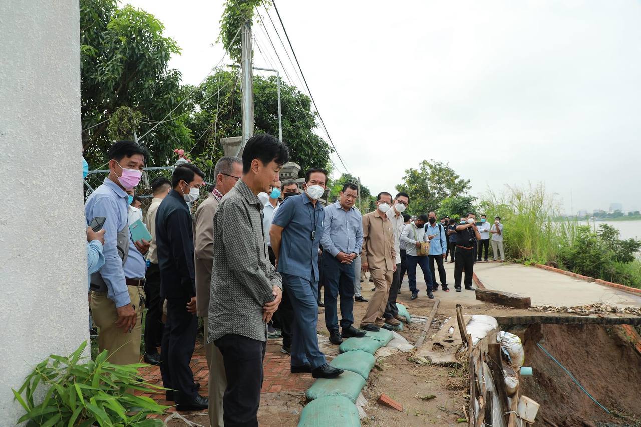 ភ្នំពេញ ៖ នៅព្រឹកថ្ងៃអង្គារ ថ្ងៃទី២៦ ខែកក្កដា ឆ្នាំ២០២២នេះ ឯកឧត្ដម ឃួង ស្រេង អភិបាលនៃគណៈអភិបាល រាជធានីភ្នំពេញ បាន ដឹកនាំមន្រ្តីរដ្ឋបាលរាជធានី ភ្នំពេញ និងមន្ទីរអង្គភាពជំនាញពាក់ព័ន្ធចុះពិនិត្យទីតាំងបាក់ច្រាំងទន្លេសាប ដែលប៉ះពាល់លំនៅឋាន និងផ្លូវបេតុង ស្ថិតនៅភូមិព្រែកតាគង់ សង្កាត់ព្រែកតាសេក ខណ្ឌជ្រោយចង្វារ រាជធានី ភ្នំពេញ។