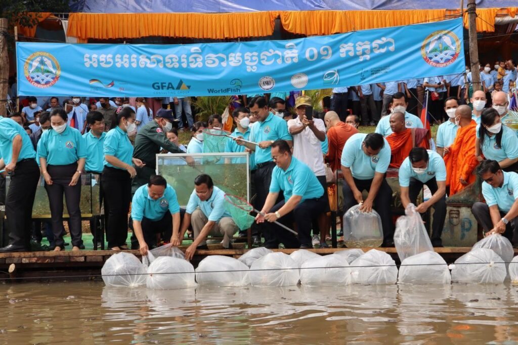 ខេត្តកំពង់ធំប្រារព្ធពិធីលែងត្រីមេពូជ កូនត្រីស្រែ ១១០គ.ក និងកូនត្រី ៦ម៉ឺនក្បាល ចូលក្នុងអាងទឹកអូរមៀន ក្នុងស្រុកសណ្តាន់