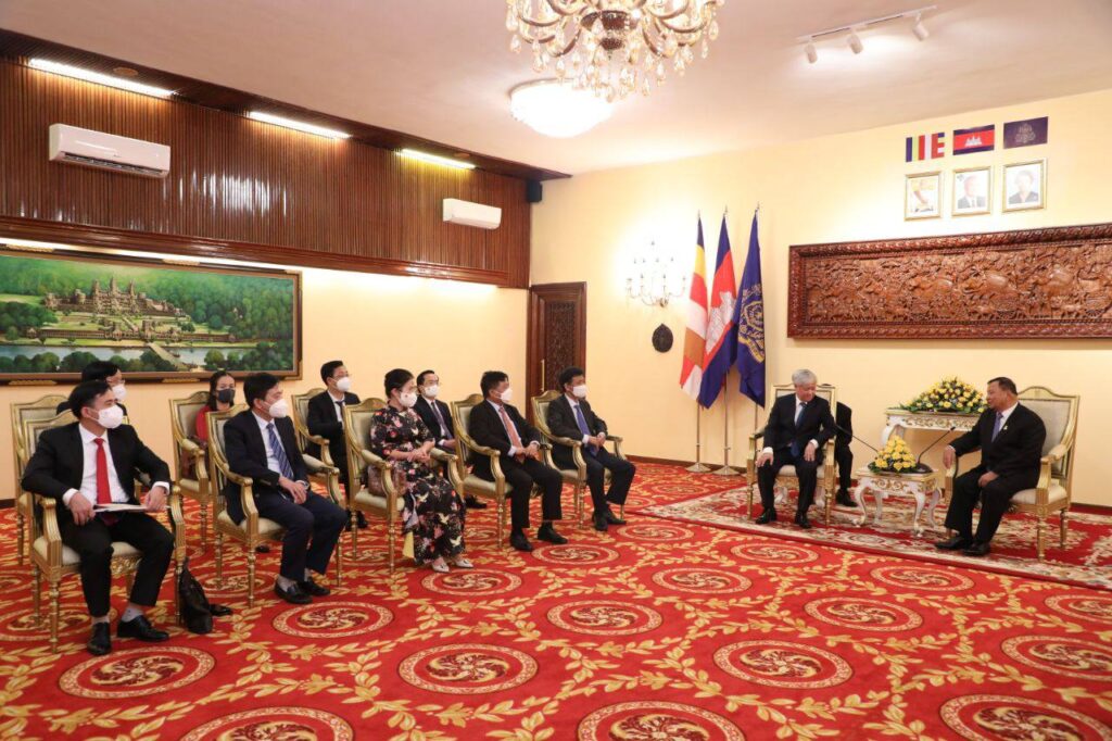 ភ្នំពេញ ៖ សម្តេចវិបុលសេនាភក្តី សាយ ឈុំ ប្រធានព្រឹទ្ធសភា នៃព្រះរាជាណាចក្រកម្ពុជា បានអនុញ្ញាតឱ្យឯកឧត្តម ដុ វ៉ាន់ចៀន គណៈលេខាមជ្ឈិមបក្សកុម្មុយនីស្តវៀតណាម និងជាប្រធានគណៈកម្មាធិការមជ្ឈិមរណសិរ្សមាតុភូមិវៀតណាម ចូលជួបសម្តែងការគួរសម នៅវិមានព្រឹទ្ធសភា នារសៀលថ្ងៃទី២៨ ខែកក្កដា ឆ្នាំ២០២២។