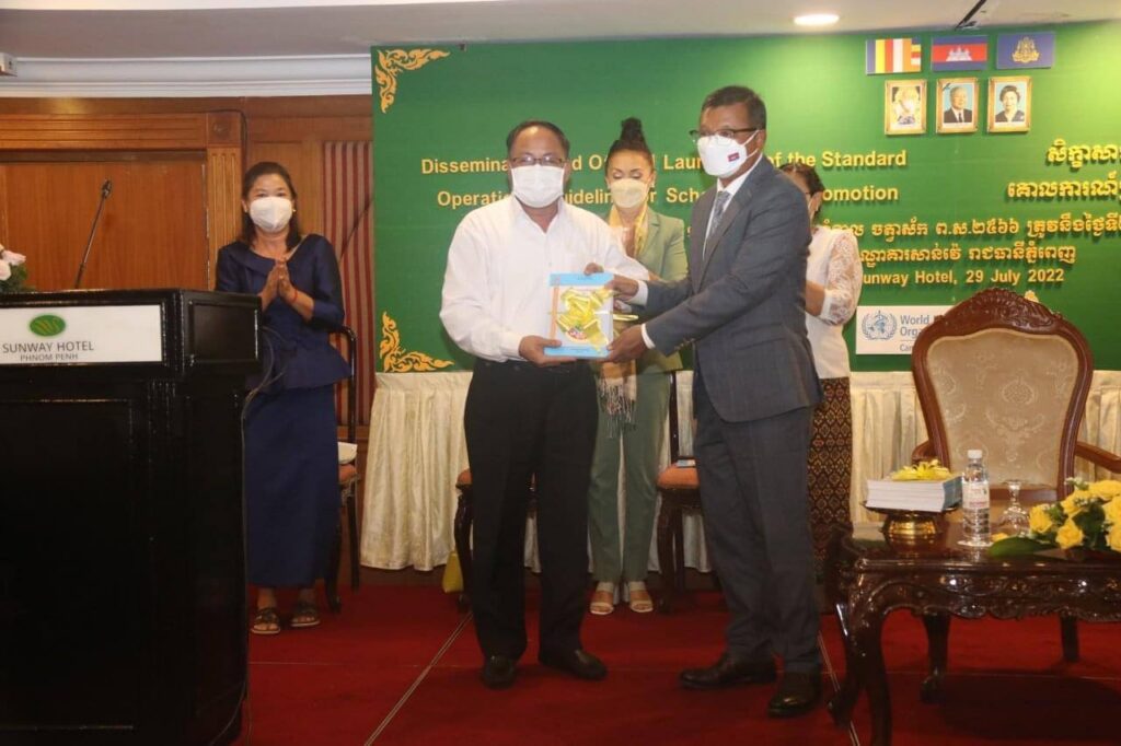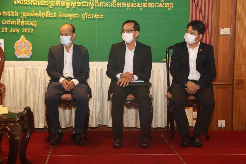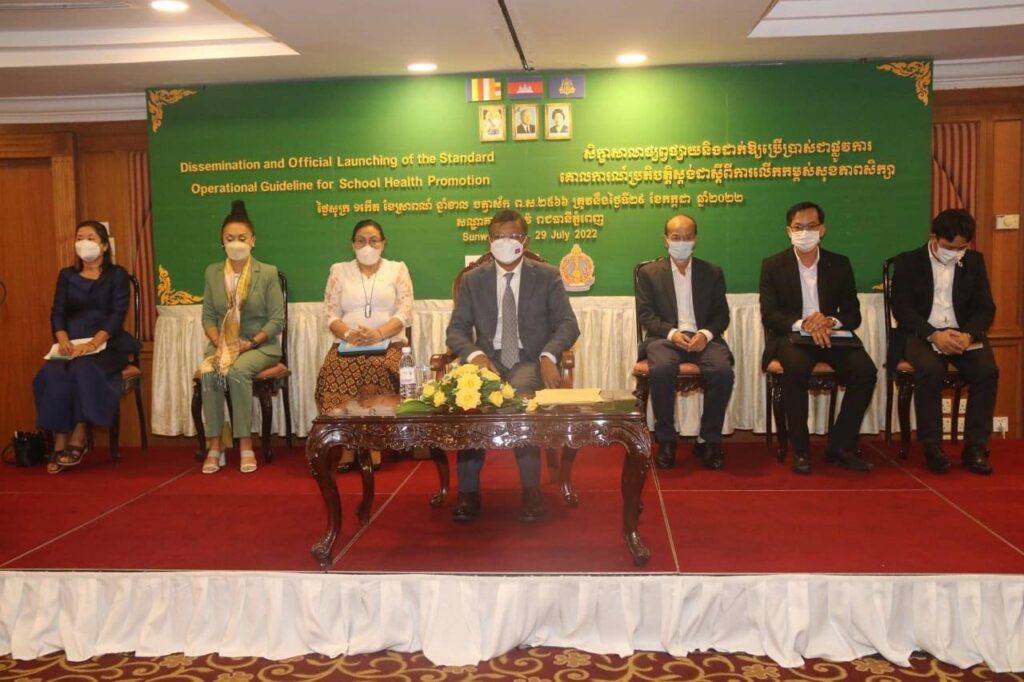 ភ្នំពេញ៖ ក្រសួងអប់រំ យុវជន និងកីឡា បានរៀបចំពិធីដាក់ឱ្យប្រើប្រាស់ជាផ្លូវការសៀវភៅគោលប្រតិបត្តិស្តង់ដារស្ដីពី “ការលើកកម្ពស់សុខភាពសិក្សាសម្រាប់គ្រឹះស្ថានចំណេះទូទៅ” ដែលប្រព្រឹត្តទៅក្រោមអធិបតីភាព ឯកឧត្ដមបណ្ឌិតសភាចារ្យ ហង់ជួន ណារ៉ុន រដ្ឋមន្ត្រីក្រសួងអប់រំ យុវជន និងកីឡា និងជាប្រធានគណៈកម្មាធិការអន្តរក្រសួងស្ដីពីសុខភាពសិក្សា ដោយមានការចូលរួមពីមន្ត្រីទូទាំងរាជធានី-ខេត្តនៅថ្ងៃទី២៩ខែកក្កដា ឆ្នាំ ២០២២ នៅសណ្ឋាគារសាន់វេ ។