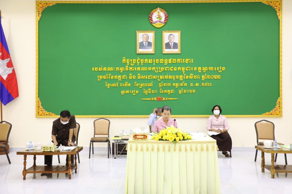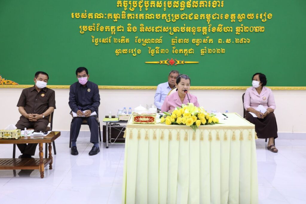 ខេត្តស្វាយរៀង៖ លោកជំទាវកិត្តិសង្គហបណ្ឌិត ម៉ែន សំអន អនុប្រធានគណបក្សប្រជាជនកម្ពុជា ប្រធានក្រុមការងារគណបក្សចុះមូលដ្ឋានខេត្តស្វាយរៀងថ្លែងក្នុងកិច្ចប្រជុំបូកសរុបលទ្ធផលនៃការអនុវត្តភារកិច្ចរបស់គណៈកម្មាធិការគណបក្សខេត្តស្វាយរៀង ប្រចាំខែកក្កដា និងទិសដៅភារកិច្ចសំខាន់ៗសម្រាប់អនុវត្តខែសីហា ឆ្នាំ២០២២ នាព្រឹកថ្ងៃសៅរ៍ ២កើត ខែស្រាពណ៍ ឆ្នាំខាល ចត្វាស័ក ព.ស. ២៥៦៦ ត្រូវនឹងថ្ងៃទី៣០ ខែកក្កដា ឆ្នាំ២០២២ ។