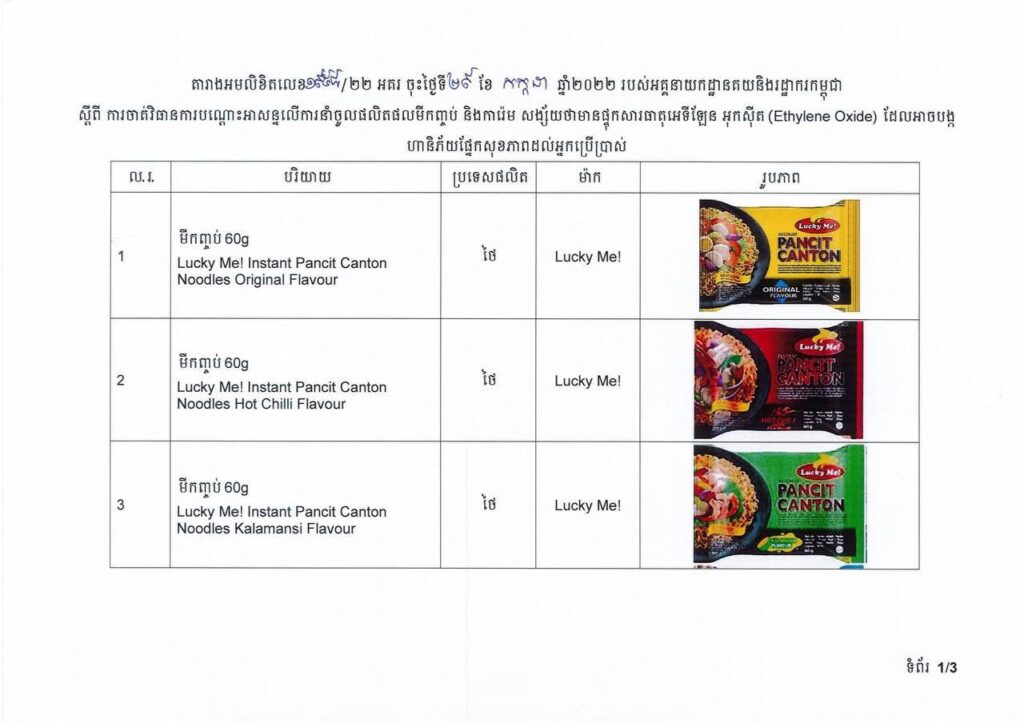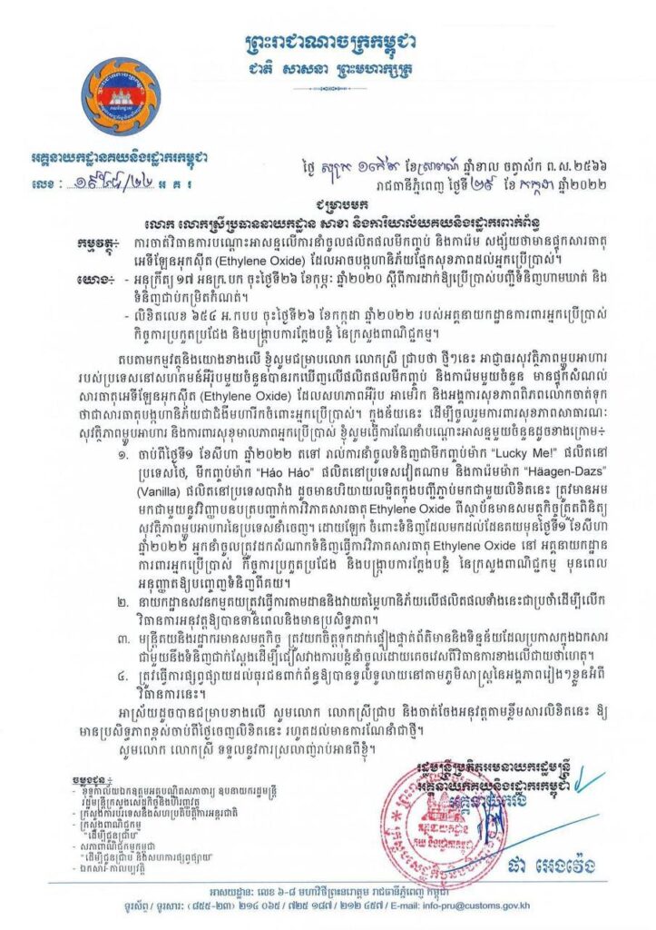 ផលិតផលមីកញ្ចប់ និងការ៉េម សង្ស័យថាមានផ្ទុកសារធាតុ អេទីឡែនអុកស៊ីត (Ethylene Oxide) ដែលអាចបង្កហានិភ័យផ្នែកសុខភាពដល់អ្នកប្រើប្រាស់One-Minuteអត្ថបទដោយ៖AMS OneMinute AMS OneMinuteអត្ថបទមុនអត្ថបទបន្ទាប់