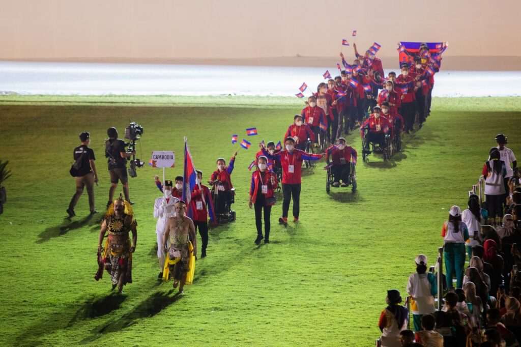 ភ្នំពេញ៖ ពិធីបើកព្រឹត្តិការណ៏អាស៊ានប៉ារ៉ាឡាំពិកហ្គេមលើកទី១១ បានប្រព្រឹត្តិទៅជាផ្លូវការ នៅល្ងាចថ្ងៃទី៣០ ខែកក្កដា ឆ្នាំ២០២២នេះ នៅពហុកីឡដ្ឋាន Stadion Manahan ស្ថិតក្នុងទីក្រុងសូឡូ ខេត្តស៊ូរ៉ាកាតា ប្រទេសឥណ្ឌូនេស៊ី ក្រោមអធិបតីភាពឯកឧត្តមបណ្ឌិត (H.C) K.H. MA’RUF AMIN អនុប្រធានាធិបតី សាធារណរដ្ឋឥណ្ឌូណេស៊ី ឯកឧត្តម ហ៊ុន ម៉ានី អនុប្រធានគណៈកម្មាធិការប៉ារ៉ាឡាំពិកកម្ពុជា តំណាងដ៏ខ្ពង់ខ្ពស់សម្ដេចតេជោ ហ៊ុន សែន នាយករដ្ឋមន្ដ្រីនៃកម្ពុជា ព្រមទាំងឯកឧត្តម វ៉ាត់ ចំរើន អគ្គលេខាធិការ Camsoc និងឯកឧត្តម យី វាសនា នាយបេសកកម្មប៉ារ៉ាហ្គេមកម្ពុជា និងថ្នាក់ដឹកនាំបណ្តាប្រទេសអាស៊ាន។
