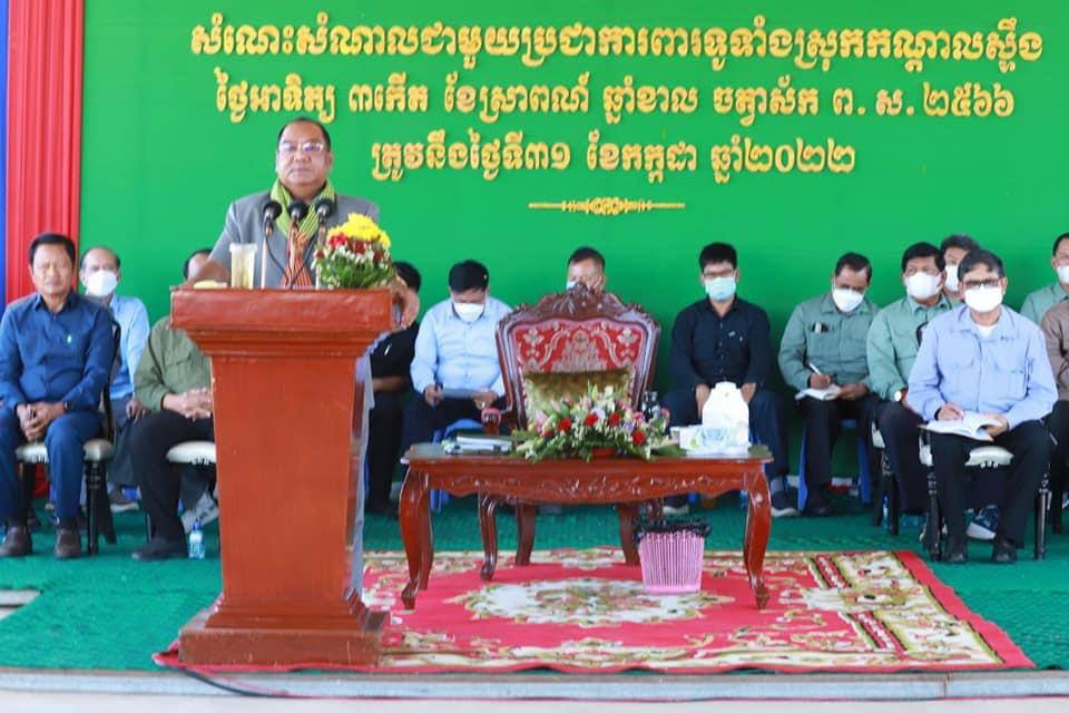 នៅក្នុងពិធីសំណេះសំណាល ជាមួយប្រជាការពារស្រុកកណ្ដាលស្ទឹង ខេត្តកណ្ដាល នាព្រឹកថ្ងៃទី៣១ ខែកក្កដា ឆ្នាំ២០២២ ឯកឧត្តមក៏បានផ្តាំផ្ញើឱ្យ អាជ្ញាធរ និងកងកម្លាំងទាំងអស់ បន្តធ្វើអំពើល្អបម្រើសេវាសាធារណៈសេវាតម្រូវការជូនប្រជាពលរដ្ឋឱ្យបានល្អត្រឹមត្រូវ ត្រូវបន្តអនុវត្តន៍គោលនយោបាយដ៏ត្រឹមត្រូវរបស់គណបក្សប្រជាជនកម្ពុជា ឱ្យបានល្អនិងដោយស្មោះត្រង់ កុំធ្វើជាមន្រ្តីជើង១០ ត្រូវធ្វើជាមន្រ្តីជើង២ ចុះសួរសុខទុក្ខជាមួយប្រជាពលរដ្ឋនៅតាមមូលដ្ឋានជាប្រចាំ ដើម្បីឱ្យដឹងពីសុខទុក្ខនិងការលំបាករបស់ប្រជាពលរដ្ឋដោះស្រាយឱ្យបានទាន់ពេលវេលា នៅពេលប្រជាពលរដ្ឋជួបគ្រោះមហន្តរាយផ្សេងៗ។