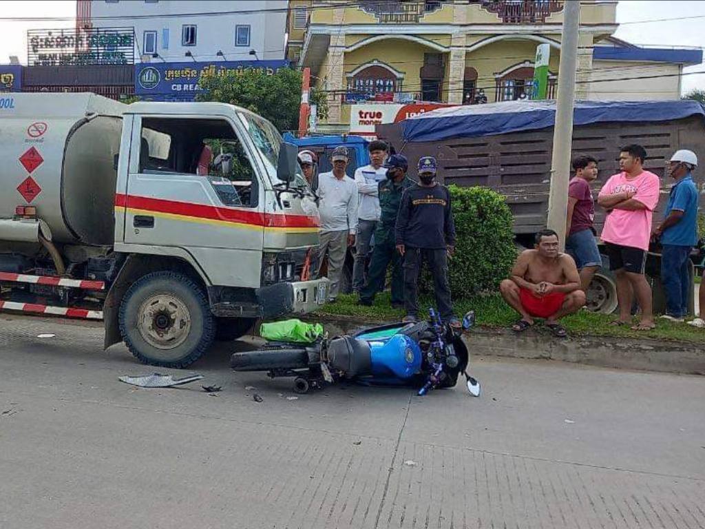 ភ្នំពេញ ៖ បុរសម្នាក់ ជានិស្សិតសាលាភាសាកូរ៉េ ត្រូវបានរថយន្តដឹកប្រេងក្រុមហ៊ុន SOKIMEX មួយគ្រឿង បើកស្របគ្នា បុកពីក្រោយផ្ទប់ខឿនសួនច្បារពុះចែកទ្រូងផ្លូវពេញទំហឹង បណ្ដាលស្លាប់បាត់បង់ជីវិតភ្លាមៗនៅនឹងកន្លែងកើតហេតុ បន្ទាប់មកអ្នកបើកបររថយន្ត បានចុះរត់គេចខ្លួនបាត់តែម្តង។ ហេតុការណ៍គ្រោះថ្នាក់ចរាចរណ៍នេះ បានកើតឡើងកាលពីវេលាម៉ោង៦ និង៤០នាទីព្រឹក ថ្ងៃទី០១ ខែសីហា ឆ្នាំ២០២២ ស្ថិតនៅតាមបណ្តយផ្លូវមហាវិថី ឈ្នះឈ្នះ មុខសាលាពហុបច្ចេកទេសកម្ពុជា ហៅសាលាកូរ៉េ នៅភូមិព្រៃពពេល សង្កាត់សំរោងក្រោម ខណ្ឌពោធិ៍សែនជ័យ។