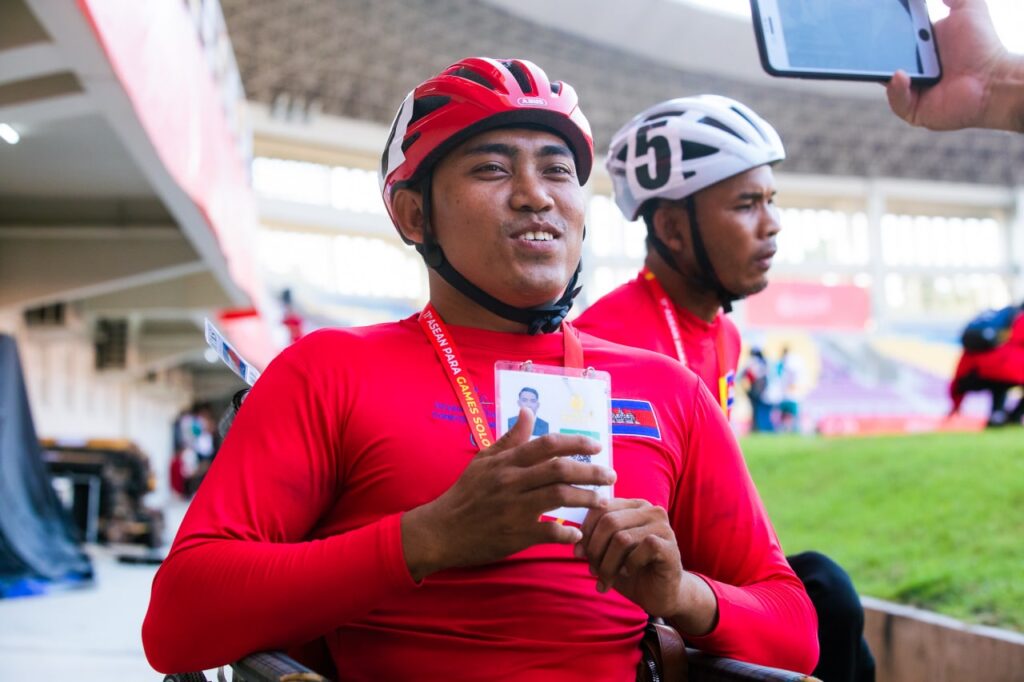 កីឡាករប្រណាំងរទេះជនពិការ វ៉ាន វ៉ុន T54 ដណ្តើមបានមេដាយប្រាក់ ជូនកម្ពុជា ក្នុងព្រឹត្តការណ៍អាស៊ានប៉ារ៉ាហ្គេម លើកទី១១ នាទីក្រុងសូឡូ ប្រទេសឥណ្ឌូនេស៊ី ។ ដោយ៖ ចាន់ វិចិត្រ