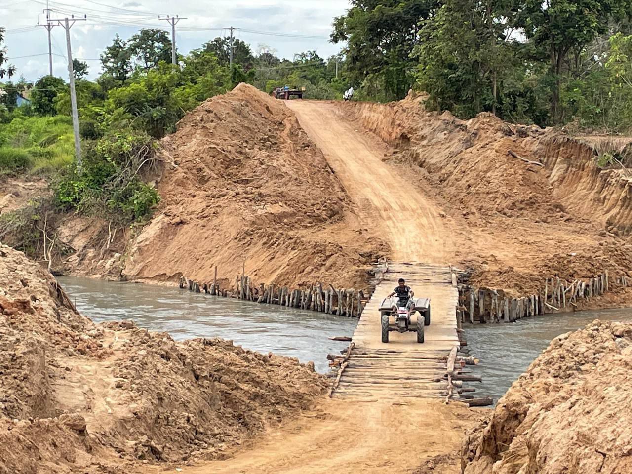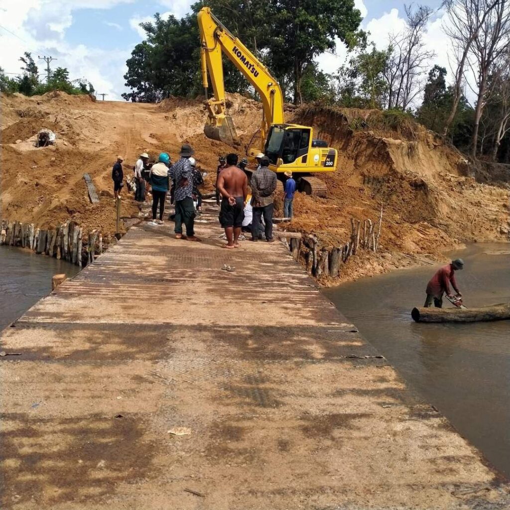 មន្ត្រីជំនាញ និងអាជ្ញាធរ បានកសាងស្ពានបណ្ដោះអាសន្ន ឱ្យបងប្អូនប្រជាពលរដ្ឋធ្វើដំណើរ ឆ្លងកាត់នៅលើទំនប់ចាក់ទឹមដែលបានហូរច្រោះកាត់ផ្ដាច់ដោយសារជំនន់ទឹកភ្លៀងជាង ១០០ម៉ែត្រនោះហើយ