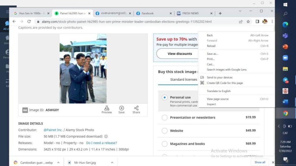 សូមរំលឹកថា នៅថ្ងៃទី៣០ ខែកក្កដា ឆ្នាំ២០២២ សម្តេចតេជោ ហ៊ុន សែន បានបង្ហោះតាមបណ្តាញសង្គមហ្វេសប៊ុក ប្រកាសរកប្រភពរូបភាពរបស់សម្តេច ដែលពិនិត្យលើស្ថានភាពរូបថតនេះអាចនៅក្នុងឆ្នាំ១៩៩៦ ឬឆ្នាំ១៩៩៧នោះ ក៏មានហ្វេសប៊ុកឈ្មោះ Sophal Chhay Journalist បាន comment និងបញ្ជាក់ថា រូបភាពចាស់ៗរបស់សម្តេច ត្រូវបានគេដាក់លក់នៅតាមអនឡាញ (Online) មួយចំនួន! ម្យ៉ាងទៀត ទីភ្នាក់ងារសារព័ត៌មានបរទេស ដូចជា AFP, Reuters និង AP ជាដើម រួមទាំងអ្នកថតរូបឯករាជ្យជាច្រើនផង ក៏បានលក់រូបចាស់ៗនៅតាមបណ្តាញអនឡាញដែរ ។