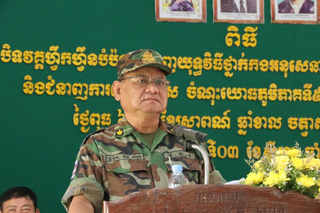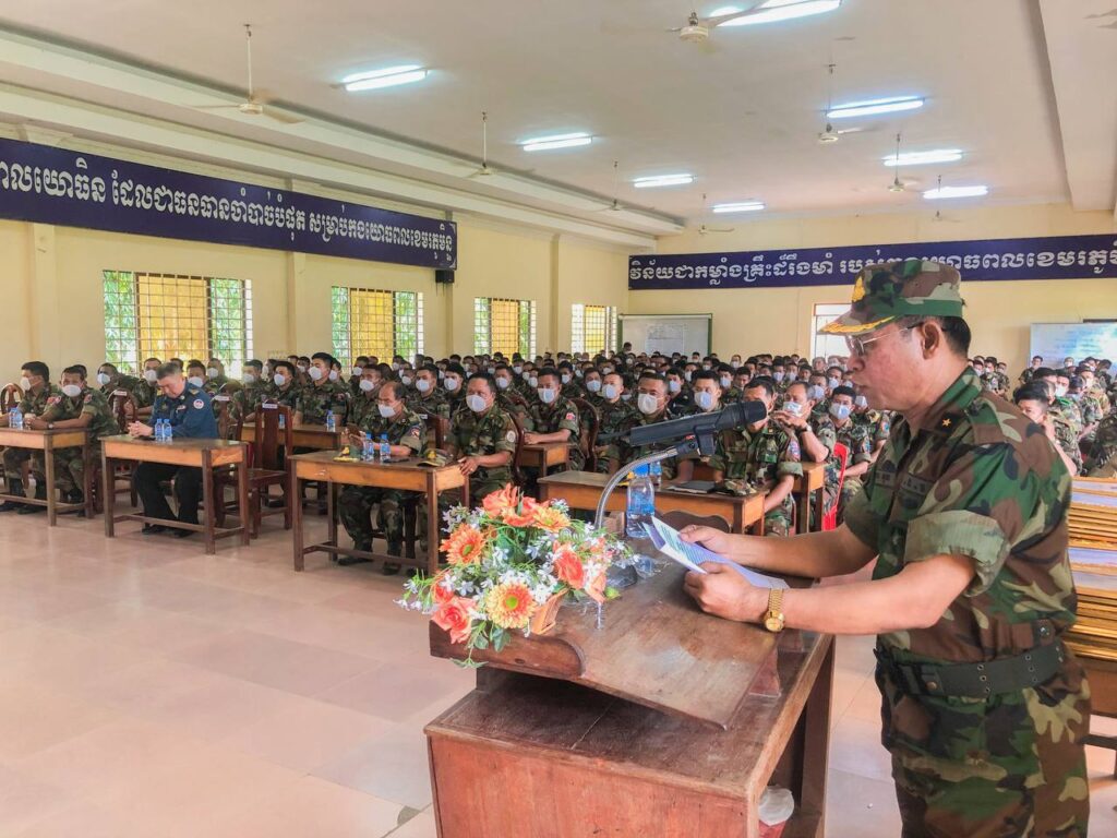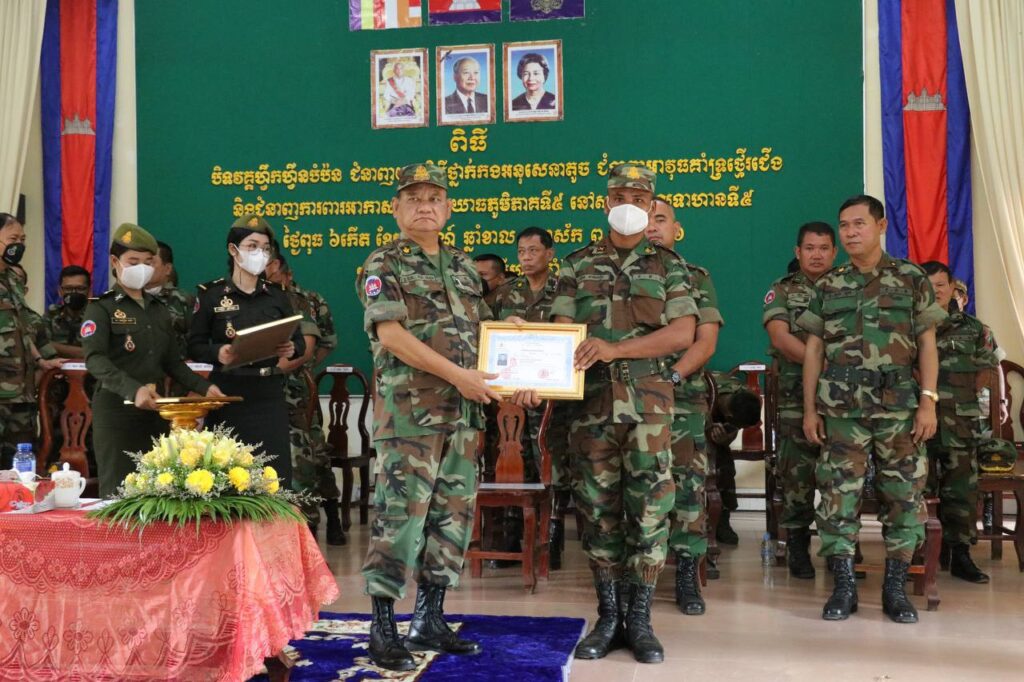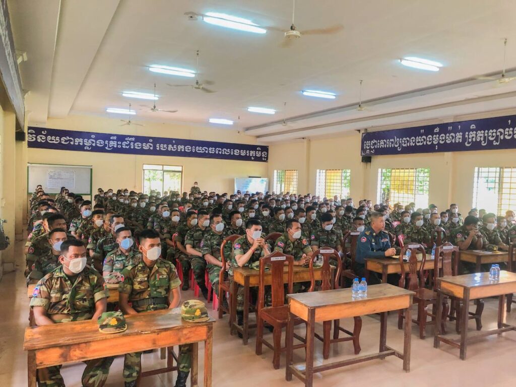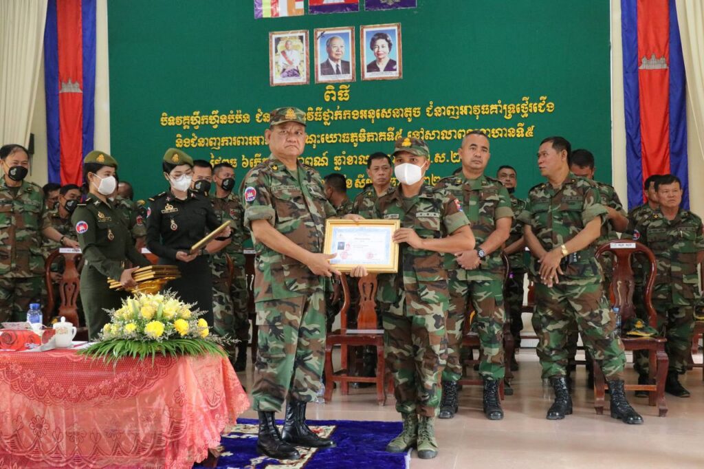 ខេត្តបាត់ដំបង៖ ឧត្តមសេនីយ៍ឯក ឯក សំអូន មេបញ្ជាការរងកងទ័ពជើងគោក មេបញ្ជាការយោធភូមិភាគទី៥ បានអញ្ជើញជាអធិបតីក្នុងពិធីបិទវគ្គហ្វឹកហ្វឺន បំប៉នយុទ្ធវិធីថ្នាក់កងអនុសេនាតូច បំប៉នជំនាញអាវុធគាំទ្រថ្មើរជើង និងបំប៉នជំនាញការពារអាកាស នៅសាលប្រជុំសាលាពលទាហានទី៥ យោធភូមិភាគទី៥ ស្ថិតនៅក្នុង ឃុំឈើទាល ស្រុកបាណន់ ខេត្តបាត់ដំបង នាព្រឹកថ្ងៃទី៣ ខែសីហា ឆ្នាំ២០២២ ។