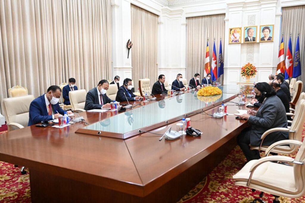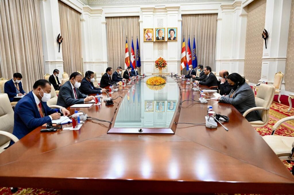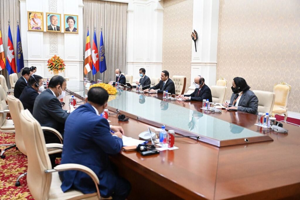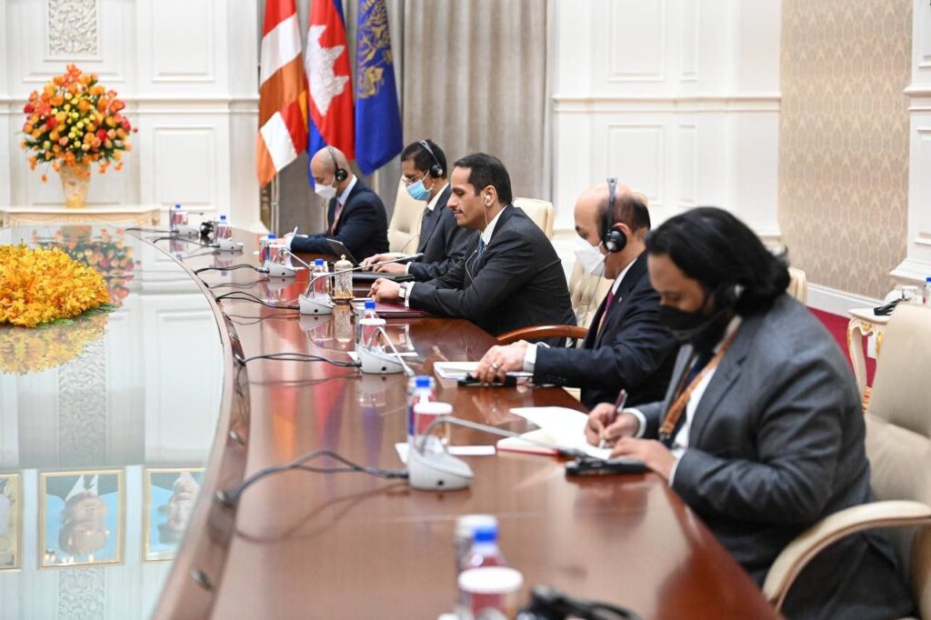 ភ្នំពេញ៖ ល្ងាចថ្ងៃទី ៣ ខែសីហា ឆ្នាំ២០២២ សម្តេចអគ្គមហាសេនាបតីតេជោ ហ៊ុន សែន នាយករដ្ឋមន្រ្តីនៃព្រះរាជាណាចក្រកម្ពុជា អនុញ្ញាតឲ្យព្រះអង្គម្ចាស់ សេកមហាម៉េដ ប៊ីន អាប់ឌុលរ៉ាម៉ាន អាល់តានី ឧបនាយករដ្ឋមន្រ្តី និងជារដ្ឋមន្រ្តីការបរទេស រដ្ឋកាតា ចូលជួបសំដែងការគួរសម និងពិភាក្សាការងារ។