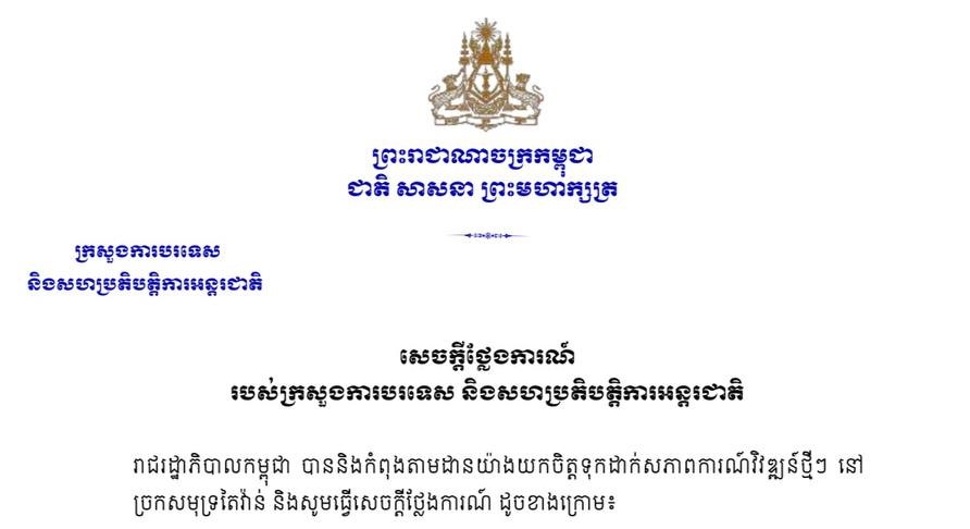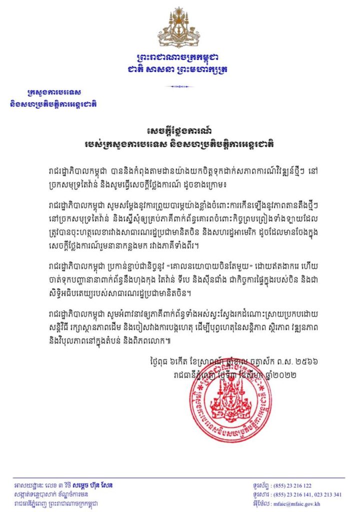 កម្ពុជាប្រកាន់ខ្ជាប់ជានិច្ចនូវគោលនយោបាយចិនតែមួយឥតងាករេOne-Minuteអត្ថបទដោយ៖AMS OneMinute AMS OneMinuteអត្ថបទមុនអត្ថបទបន្ទាប់