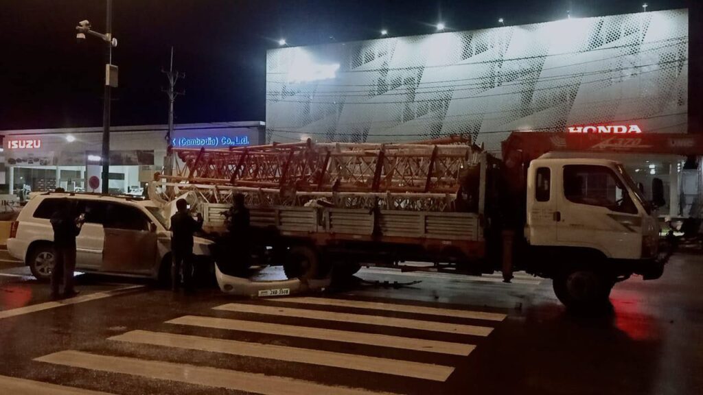 ភ្នំពេញ ៖ រថយន្តម៉ាកហាយឡែនឌ័រមួយគ្រឿង បើកបរដោយបុរសជនជាតិចិនម្នាក់រួមដំណើរនឹងបុរសជនជាតិចិននិងខ្មែរ២នាក់ទៀត ធ្វើដំណើរក្នុងល្បឿនលឿនជ្រុលបុករថយន្តស្ទូចដឹកដែកកំពុងឈប់ចាំភ្លើងស្តុបពីក្រោយ ពេញទំហឹងបណ្ដាលឲ្យតែកុងគៀបជាប់ក្នុងកាប៊ីន សំណាងល្អរងរបួសស្រាល ឯរថយន្តហាយឡែនឌ័ររងការខូចខាតផ្នែកខាងមុខយ៉ាងដំណំ ដោយបង្កឡើងកាលពីវេលាម៉ោង ១០ និង ៤០នាទីយប់ថ្ងៃទី ៣ ខែសីហា ឆ្នាំ ២០២២ នៅត្រង់ចំណុចភ្លើងស្តុប មុខអាកាសយាន្តដ្ឋានអន្តរជាតិភ្នំពេញ តាមបណ្ដោយផ្លូវសហព័ន្ធរុស្សី ស្ថិតក្នុងសង្កាត់កាកាបទី២ ខណ្ឌពោធិ៍សែនជ័យរាជធានីភ្នំពេញ។