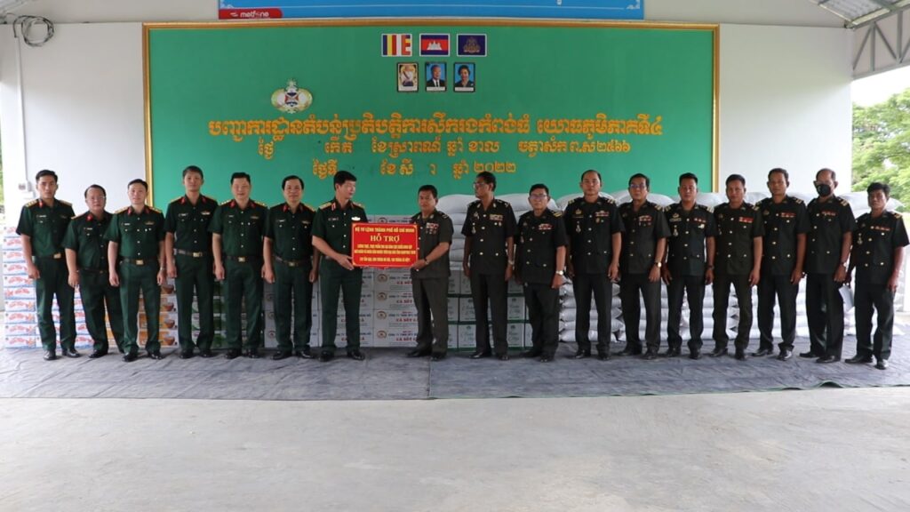 ឧត្ដមសេនីយ៍ត្រី ឡេ ង៉ុកហាយ បានមានប្រសាសន៍ថា យោងតាមកិច្ចសហប្រតិបត្តិការ រវាងកងយោធពលខេមរភូមិន្ទ នៃព្រះរាជាណាចក្រកម្ពុជា និងកងទ័ពប្រជាជនសាធារណរដ្ឋសង្គមនិយមវៀតណាម និងកិច្ចសហ ប្រតិបត្តិការ រវាងបញ្ជាការដ្ឋានយោធាទីក្រុងហូជីមិញ ជាមួយបញ្ជាការរដ្ឋានតំបន់ប្រតិបត្តិការសឹករងកំពង់ធំ កន្លងមកនេះ បញ្ជាការដ្ឋានយោធាទីក្រុងហូជីមិញ បានជួយឧបត្ថម្ភថវិកាសាងសង់អគារទីបញ្ជាការផ្នែកសឹករងទាំង៨ និង វរសនាតូចទាំង២សរុប១០ខ្នងរួចមកហើយ ដែលមានទំហំ១៩៥ម៉ែត្រការ៉េ ធ្វើពីបេតុង ប្រក់ក្បឿង ដោយឡែកនៅថ្ងៃនេះ បានឧបត្ថម្ភថវិកាជាថ្មី សម្រាប់សាងសង់អគារទីបញ្ជាការផ្នែកសឹករងតាំងគោក ដែលជាស្រុកទើបបង្កើតថ្មី ព្រមទាំងឧបត្ថម្ភស្បៀងអាហារ គ្រឿងឧបភោគ បរិភោគមួយចំនួនសម្រាប់ការងារ ក្នុងវិស័យមនុស្សធម៌ ។