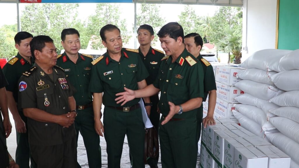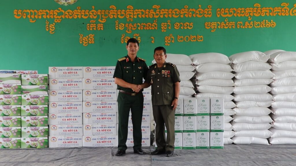 ខេត្តកំពង់ធំ ៖ ឧត្ដមសេនីយ៍ត្រី ឡេ ង៉ុកហាយ មេបញ្ជាការរង បានដឹកនាំប្រតិភូគណៈបញ្ជការយោធាទីក្រុងហូជីមិញយោធភូមិភាគទី៧ កងទ័ពប្រជាជនវៀតណាម នាំយកថវិកាប្រគល់ថវិកា ជូនបញ្ជាការដ្ឋានតំបន់ប្រតិបត្តិការសឹករងកំពង់ធំ សម្រាប់សាងសង់អគារទីបញ្ជាការផ្នែកសឹករងតាំងគោក រួមទាំងស្បៀងអាហារ សម្រាប់សកម្មភាពមនុស្សធម៌ ជួយដល់គ្រួសារកងទ័ពអតីតយុទ្ឋជន និងប្រជាពលរដ្ឋ ដែលមានជីវភាពលំបាកខ្វះខាតនៅរសៀលថ្ងៃទី០៣ ខែសីហា ឆ្នាំ២០២២ ។
