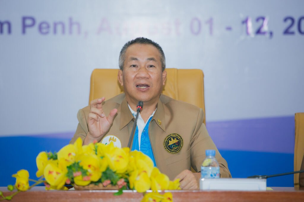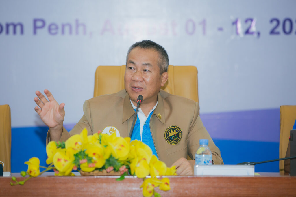 ឯកឧត្តម អគ្គលេខាធិការ បានលើកឡើងថា កិច្ចប្រជុំជាមួយសហព័ន្ធកីឡាជាតិថ្ងៃនេះគឺយើងកំណត់វិញ្ញាសា ដែលត្រូវដាក់ចូលក្នុងការប្រកួតប្រភេទកីឡានីមួយៗ ដែលត្រូវបានក្រុមប្រឹក្សាកីឡាអាស៊ីអាគ្នេយ៍បានសម្រេចរួចហើយ ដើម្បីយើងទទួលបាននូវធាតុចូលសំខាន់ៗពីគ្រប់ប្រភេទកីឡាទាំងអស់ដោយដាក់វិញ្ញាសារបស់ខ្លួន គឺដើម្បីសប្ដាហ៍ក្រោយនេះ ធ្វើការបង្ហាញក្នុងកិច្ចប្រជុំសហព័ន្ធកីឡាអាស៊ីអាគ្នេយ៍ នៅឯទីក្រុងបាងកក ព្រះរាជណាចក្រថៃអំពីប្រភេទវិញ្ញាសាដែលយើងត្រូវបានសម្រេចដាក់នៅក្នុងស៊ីហ្គេម។