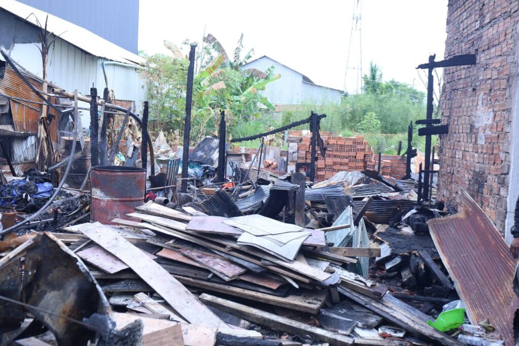 ប្រជាពលរដ្ឋរងគ្រោះចំនួន ៣គ្រួសារ ដែលបានរងគ្រោះដោយសារគ្រោះអគ្គិភ័យឆេះផ្ទះសម្បែងអស់ទាំងស្រុង ទទួលបានអំណោយមនុស្សធម៌ពី សាខាកាកបាទក្រហមកម្ពុជាខេត្តណ្ដាល