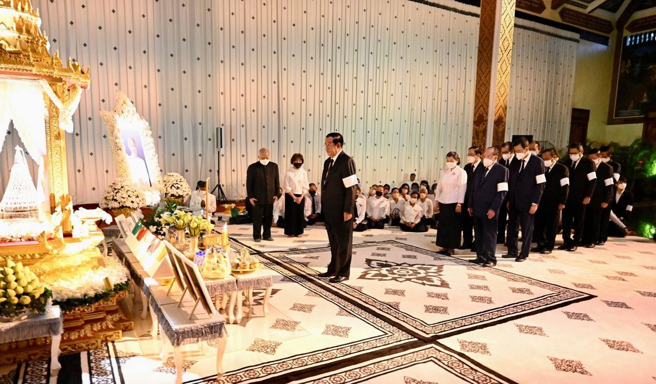 ភ្នំពេញ៖ សម្តេចអគ្គមហាសេនាបតីតេជោ ហ៊ុន សែន នាយករដ្ឋមន្ត្រី នៃព្រះរាជាណាចក្រកម្ពុជានៅរសៀលថ្ងៃទី១៦ខែសីហានេះបានដឹកនាំមន្ត្រីជាន់ខ្ពស់នៃរាជរដ្ឋាភិបាលកម្ពុជា អញ្ជើញគោរពព្រះវិញ្ញាណក្ខន្ធ សម្តេចព្រះបរមរាមា នរោត្តម យុវនាថ ឧត្តមប្រឹក្សាផ្ទាល់ព្រះមហាក្សត្រ នៅសាលាធម្មសភា វត្តបទុមវតី រាជធានីភ្នំពេញ។