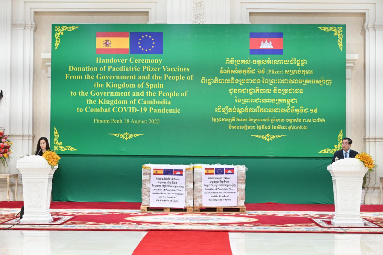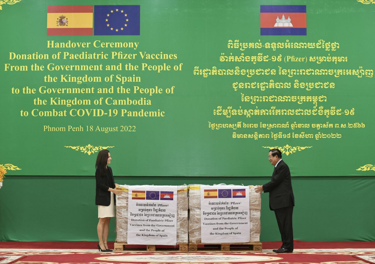 សម្តេចតេជោ ហ៊ុន សែន ក្នុងនាមប្រជាជន និងរាជរដ្ឋាភិបាលកម្ពុជា បានថ្លែងអំណរគុណចំពោះប្រជាជននិងរដ្ឋាភិបាលព្រះរាជាណាចក្រអេស្ប៉ាញ និងប្រទេសជាសមាជិកផ្សេងទៀតនៃសហភាពអឺរ៉ុប ដែលបន្តរួមចំណែកយ៉ាងសំខាន់ក្នុងការប្រយុទ្ធនឹងជំងឺកូវីដ១៩ តាមរយៈការផ្តល់ជំនួយវ៉ាក់សាំង ជាពិសេសវ៉ាក់សាំងសម្រាប់កុមារ និងជំនួយបច្ចេកទេសផ្សេងៗជាបន្តបន្ទាប់។