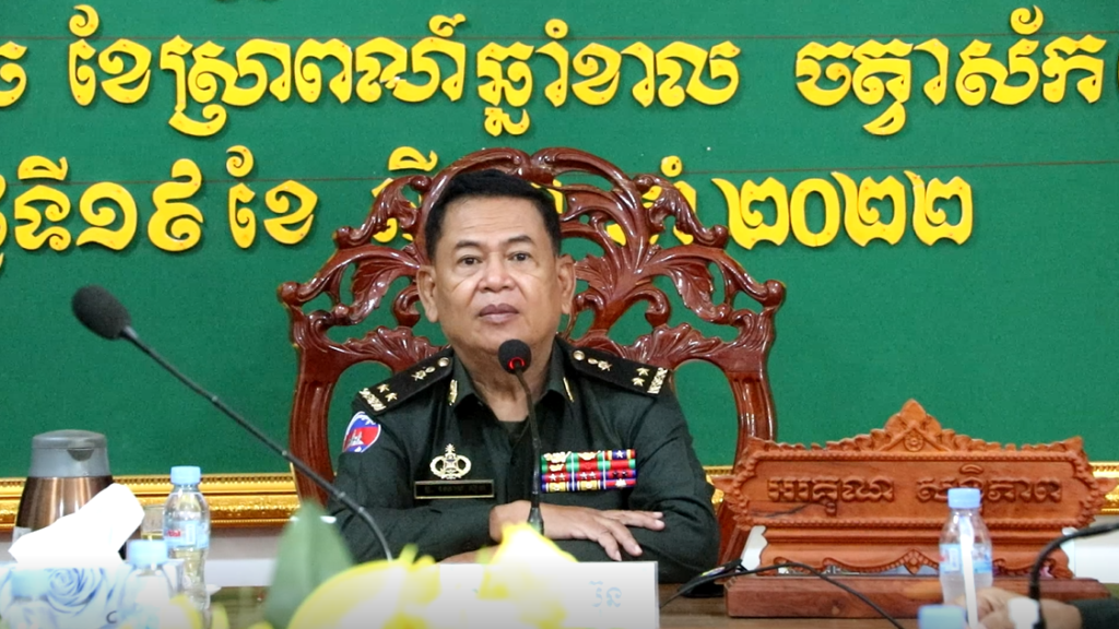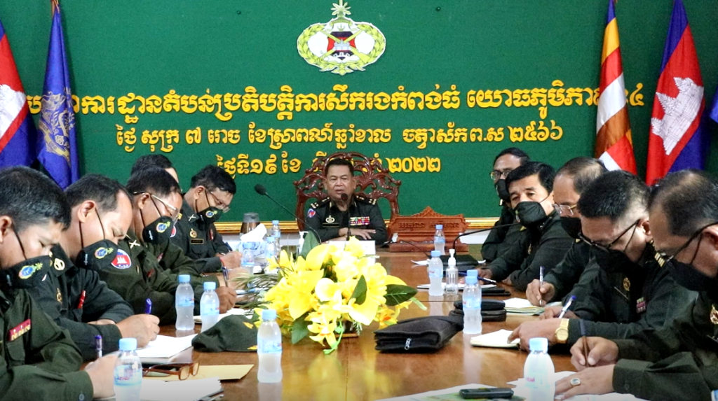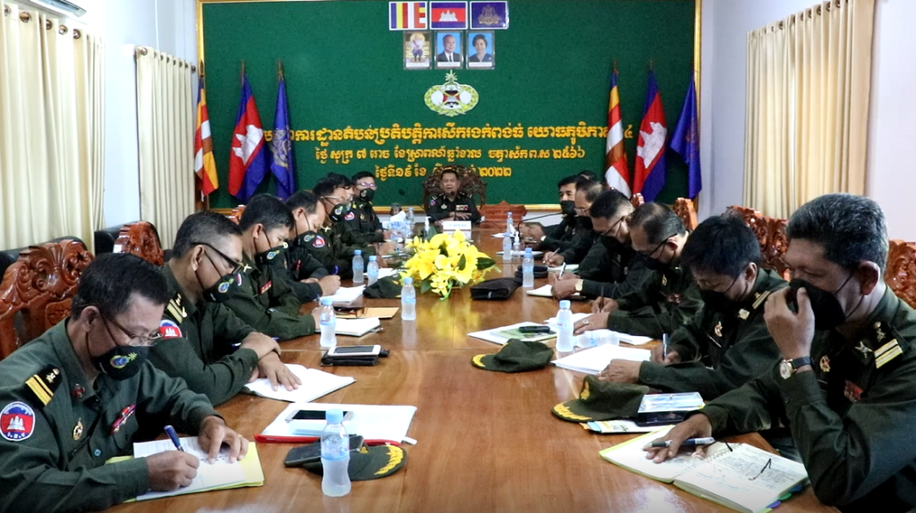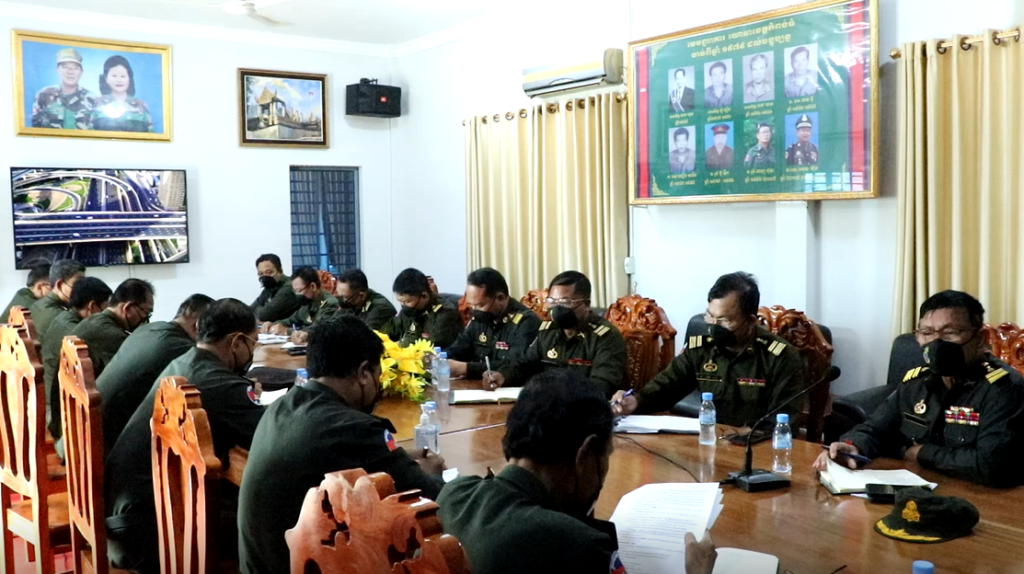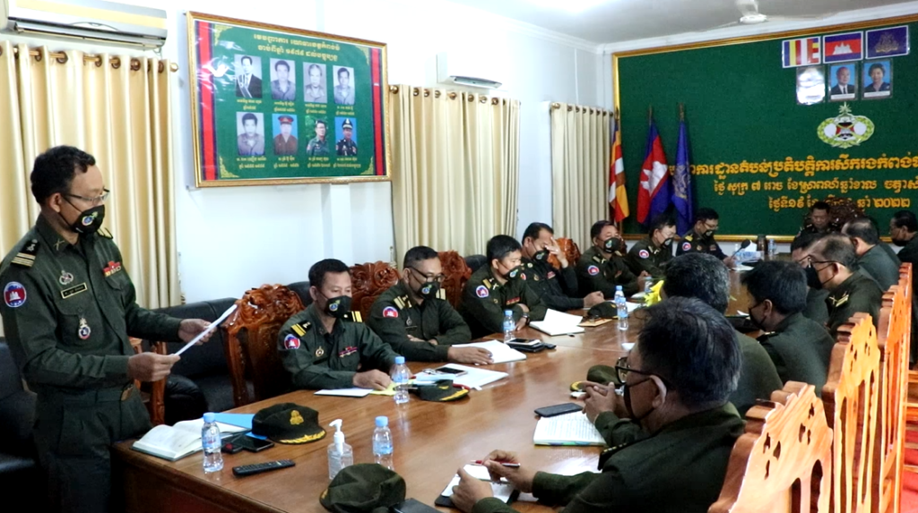 កំពង់ធំ៖ ឧត្តមសេនីយ៍ទោ សោម ស៊ុន មេបញ្ជាការតំបន់ប្រតិបត្តិការសឹករងកំពង់ធំ បានអញ្ជើញដឹកនាំកិច្ចប្រជុំត្រួតពិនិត្យលទ្ធផលការងារ ហ្វឹកហ្វឺនរៀនសូត្រប្រចាំខែសីហា ឆ្នាំ2022 និងដាក់ចេញនូវទិសដៅភារកិច្ចសម្រាប់អនុវត្តបន្ត នៅទីបញ្ជាការតំបន់ប្រតិបត្តិការសឹករងកំពង់ធំ ស្ថិតនៅ ភូមិថ្នល់បែកឃុំត្រពាំងឬស្សីស្រុកកំពង់ស្វាយខេត្តកំពង់ធំ នៅព្រឹកថ្ងៃទី 19 ខែសីហា ឆ្នាំ 2022 ។