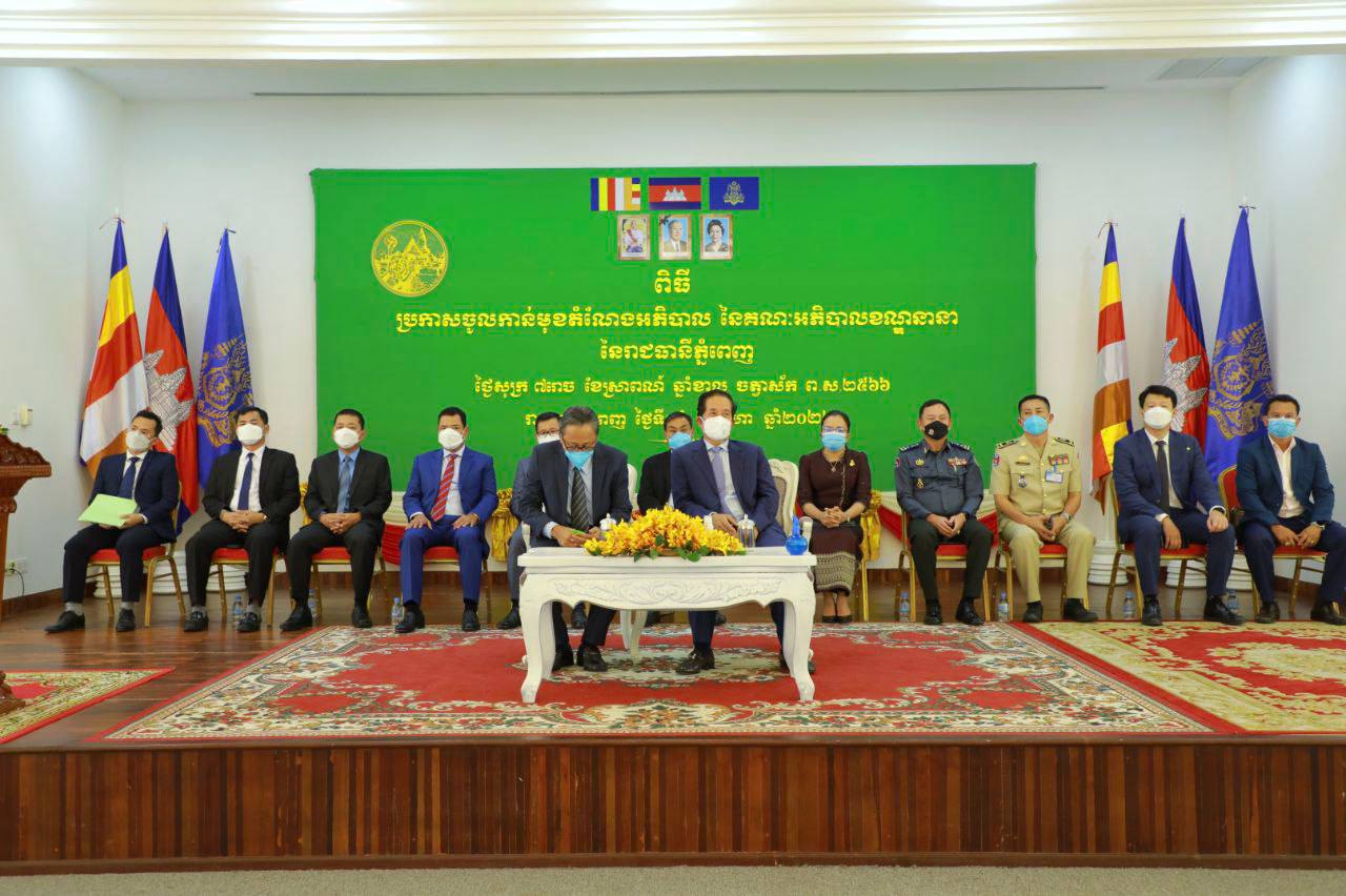 ភ្នំពេញ៖ អភិបាលខណ្ឌចំនួន៣រូប ត្រូវបានតែងតាំងថ្មី និង៥រូបទៀតត្រូវបានផ្លាស់ប្តូរ ពីខណ្ឌមួយទៅខណ្ឌមួយ។ ពិធីនេះបានប្រារព្ធនារសៀលថ្ងៃទី១៩ ខែសីហា ឆ្នាំ២០២២នេះ ក្រោមអធិបតីភាពឯកឧត្តម ឃួង ស្រេង អភិបាលនៃគណៈអភិបាលរាជធានីភ្នំពេញ និងឯកឧត្តម ម៉ប់ សារិន ប្រធានក្រុមប្រឹក្សារាជធានីភ្នំពេញ នៅសាលារដ្ឋបាលរាជធានីភ្នំពេញ។