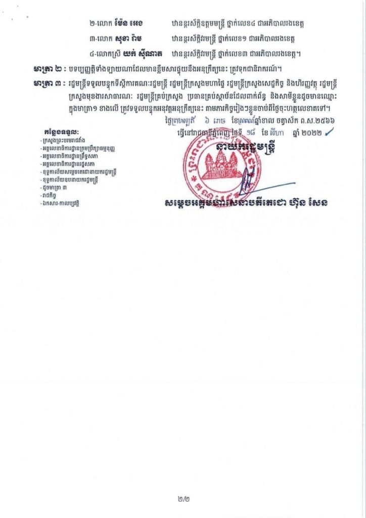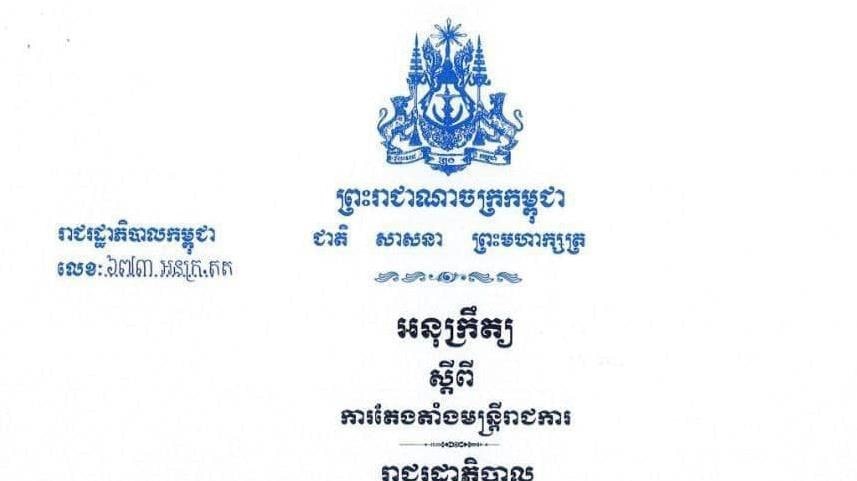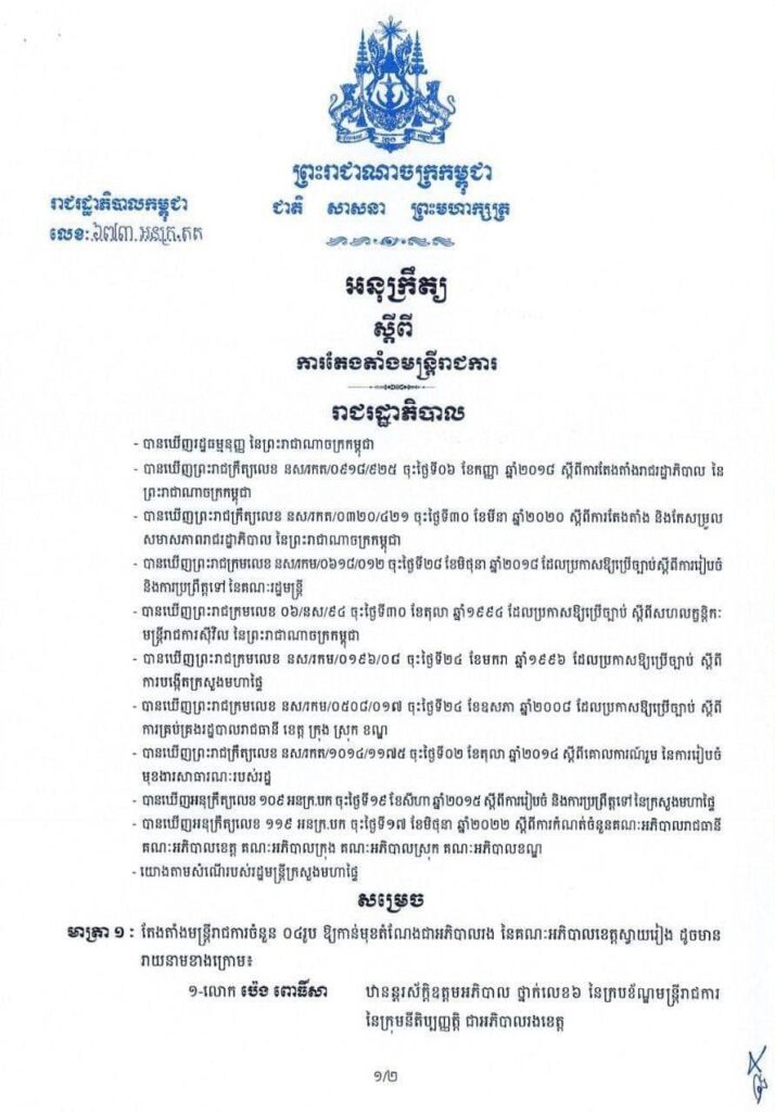 អនុក្រឹត្យតែងតាំងមន្ដ្រី ៤រូប ជាអភិបាលរងខេត្តស្វាយរៀងOne-Minuteអត្ថបទដោយ៖AMS OneMinute AMS OneMinuteអត្ថបទមុនអត្ថបទបន្ទាប់