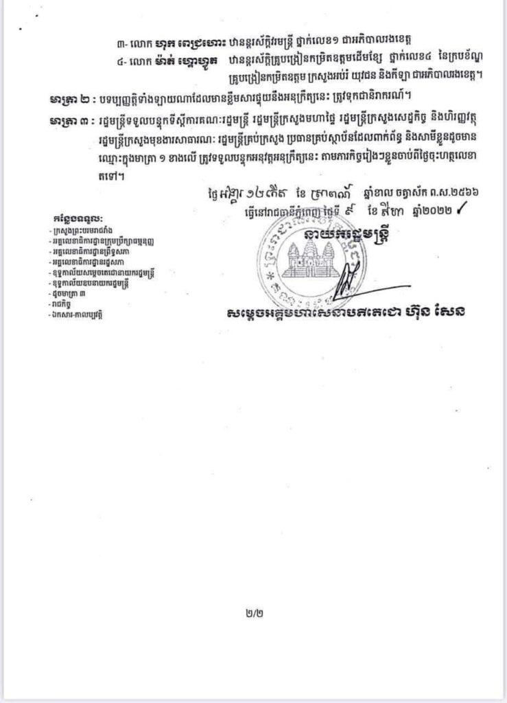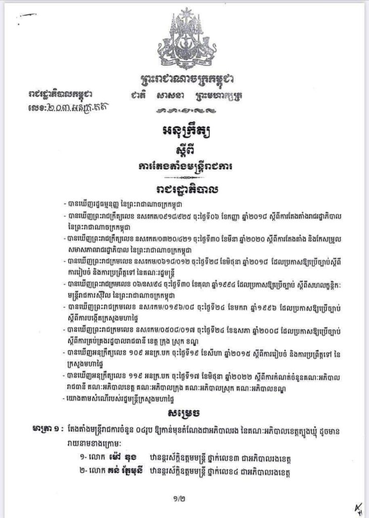 អនុក្រឹត្យ តែងតាំងមន្ដ្រីរាជការចំនួន៤រូប ជាអភិបាលរងខេត្តត្បូងឃ្មុំOne-Minuteអត្ថបទដោយ៖AMS OneMinute AMS OneMinuteអត្ថបទមុនអត្ថបទបន្ទាប់