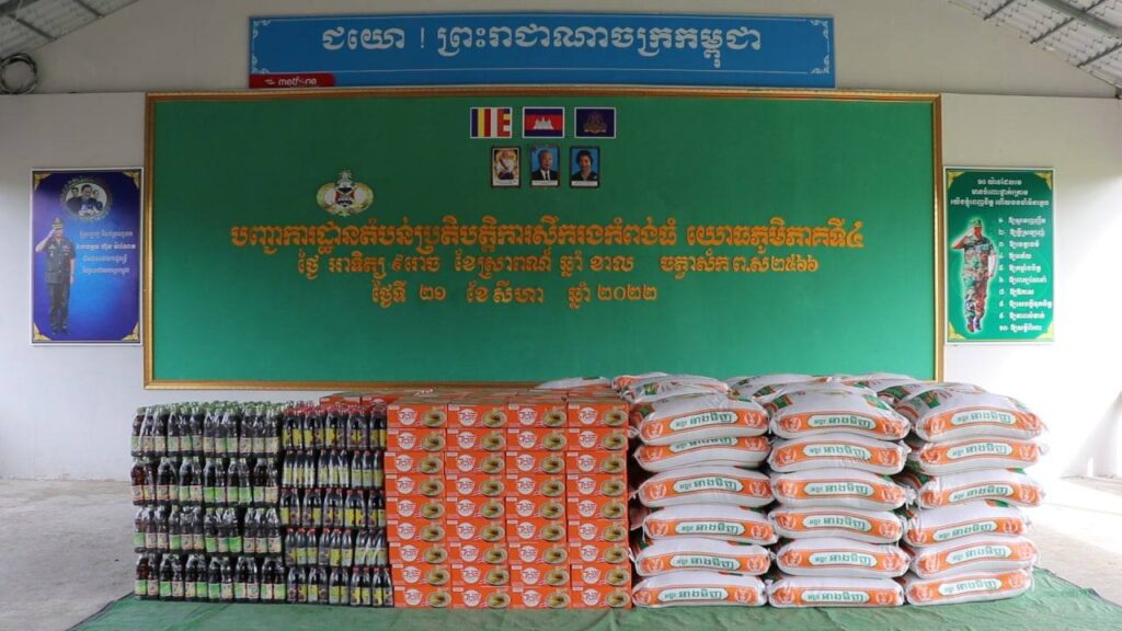 កំពង់ធំ៖ ឯកឧត្តមឧត្តមសេនីយ៍ឯក ហ៊ុន ម៉ាណែត អគ្គមេបញ្ជាការរងនៃកងយោធពលខេមរភូមិន្ទ មេបញ្ជាការកងទ័ពជើងគោក និងលោកជំទាវ ពេជ ចន្ទមុន្នី បានផ្តល់គ្រឿងឧបភោគ បរិភោគរួមមាន អង្ករ៥តោន,មី៣០០កេស,ទឹកស៊ីអីវ១០០យួរ, ទឹកត្រី១០០យួរ តាមរយៈក្រុមការងារឯកឧត្តមមេបញ្ជាការកងទ័ពជើងគោក នាព្រឹកថ្ងៃទី២១ ខែសីហា ឆ្នាំ២០២២ ជូនមេបញ្ជាកការតំបន់ប្រតិបត្តិការសឹករងកំពង់ធំ សម្រាប់ជួយ ប្រជាពលរដ្ឋជួបការលំបាក ខ្វះខាតជីវភាព និងព្រះសង្សគង់នៅតាមទីអារាមមួយចំនួន នៅតាមមូលដ្ឋាននានាក្នុងខេត្តកំពង់ធំ ។