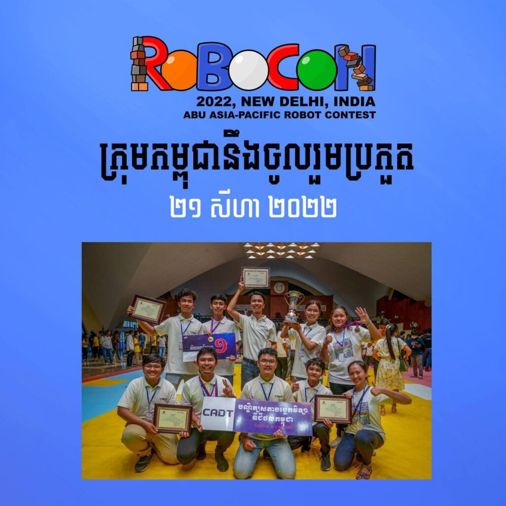 ភ្នំពេញ៖ ក្រុមកម្ពុជាដែលមាននិស្សិតឆ្នើមមកពីបណ្ឌិត្យសភាបច្ចេកវិទ្យាឌីជីថលកម្ពុជា (CADT) នៃក្រសួងប្រៃសណីយ៍និងទូរគមនាគមន៍ ជាតំណាងបានចូលរួមការប្រកួតរ៉ូបូតថ្នាក់អន្តរជាតិ ABU Robocon ឆ្នាំ២០២២ ជាមួយបណ្តាប្រទេសចំនួន ១២ ផ្សេងទៀត ដែលតំណាងដោយសាកលវិទ្យាល័យល្បីៗរបស់ខ្លួន។