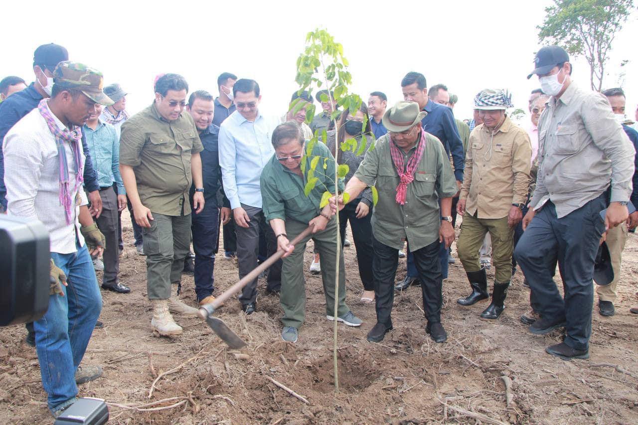 ក្នុងឱកាសនោះ ឯកឧត្តម នាយឧត្តមសេនីយ៍ ហ៊ីង ប៊ុនហៀង អគ្គមេបញ្ជាការរង កងយោធពលខេមរភូមិន្ទ និងជាមេបញ្ជាការ បញ្ជាការដ្ឋានអង្គរក្ស ដែលមានវត្តមានដឹកនាំបញ្ជាផ្ទាល់បានទទួលស្វាគមន៍ និងគោរពរាយការណ៍ជូនឯកឧត្តមរដ្ឋមន្ត្រី អំពីការងារចាត់ចែងភារកិច្ចដល់កងកម្លាំងដើម្បីរៀបចំដី និងដាំកូនឈើឡើងវិញ តាមអនុសាសន៍ដ៏ខ្ពង់ខ្ពស់របស់សម្ដេចតេជោនាយករដ្ឋមន្ត្រី ។ ឯកឧត្តម នាយឧត្តមសេនីយ៍ បានឱ្យដឹងដែរថា នៅក្នុងការងារនេះគឺបានប្រើប្រាស់កងកម្លាំង នៃបញ្ជាការដ្ឋានអង្គរក្សប្រមាណជាង ១០០០នាក់ និងគ្រឿងចក្រជាង ១០០គ្រឿង ដោយប្រចាំការនៅទីតាំងផ្ទាល់ ដើម្បីធ្វើយ៉ាងណាឱ្យឆាប់សម្រេចរួចរាល់ក្នុងរដូវភ្លៀងនេះ ។