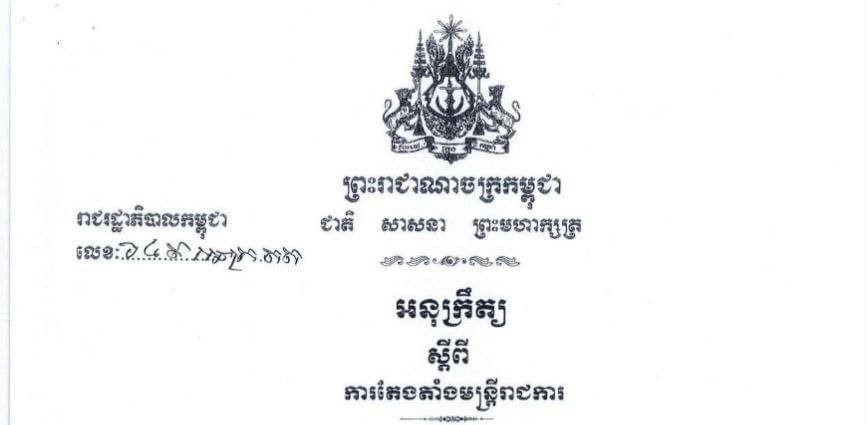 អនុក្រឹត្យតែងតាំងអភិបាលរងខេត្តកំពតចំនួន ៤រូបOne-Minuteអត្ថបទដោយ៖AMS OneMinute AMS OneMinuteអត្ថបទមុនអត្ថបទបន្ទាប់